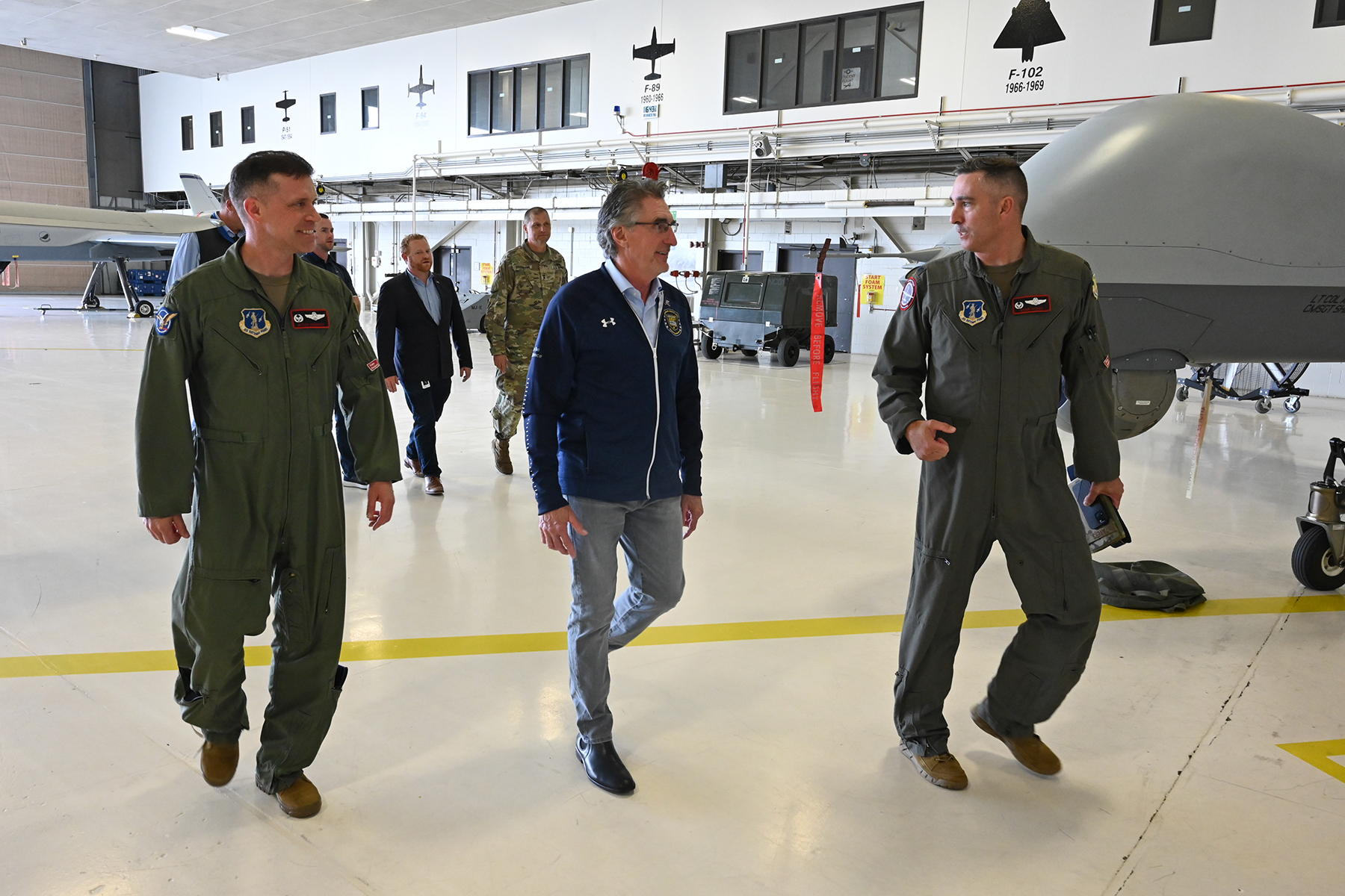 Gov. Doug Burgum, commander and chief of the N.D. National Guard, spent several hours touring the N.D. Air National Guard Base, Fargo, with Maj. Gen. Al Dohrmann, N.D. National Guard adjutant general, and 119th Wing leadership, Sept. 14, 2022. (National Guard story by David Lipp, 119th Wing Public Affairs Office)