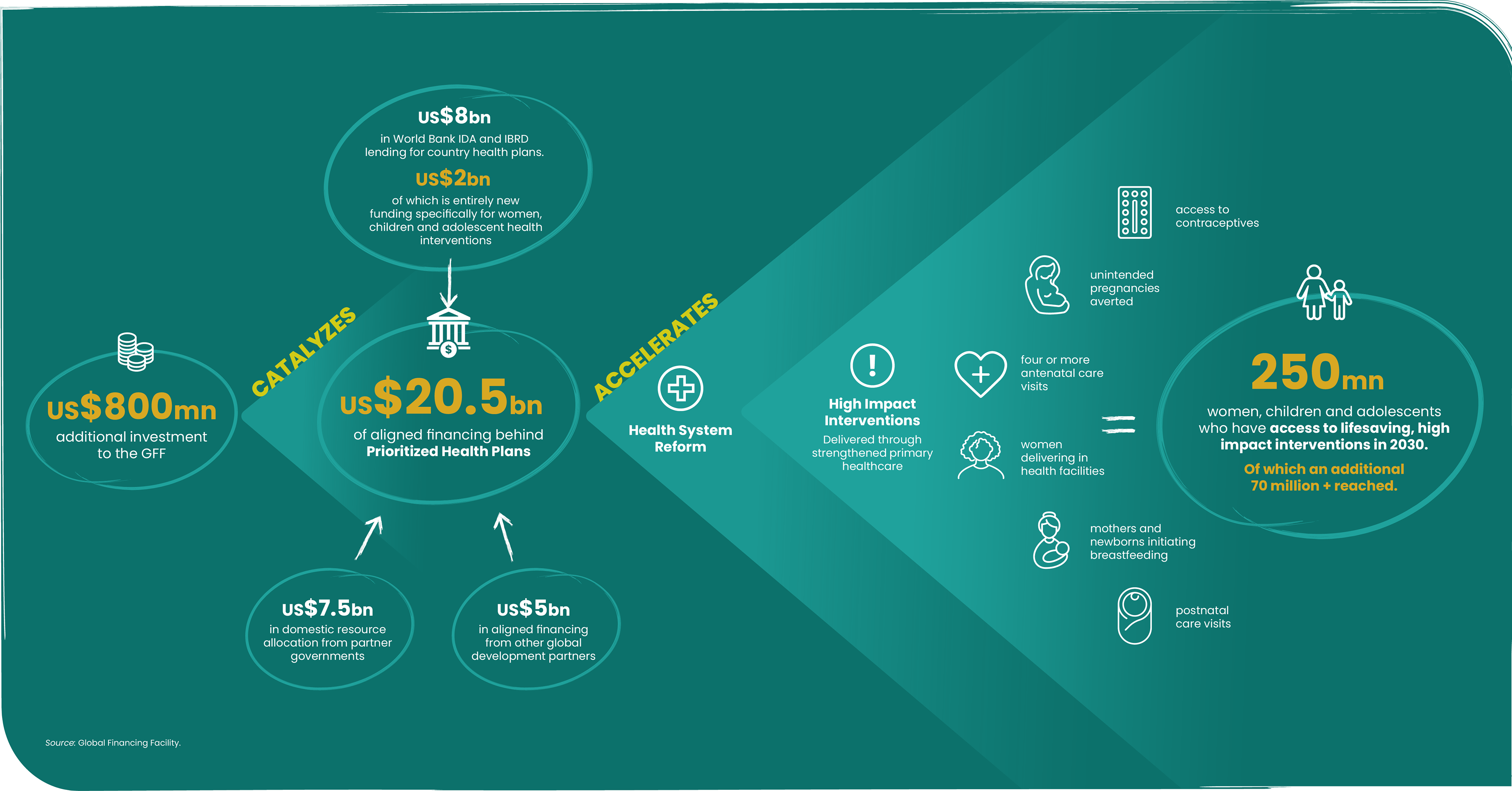 An US$800 million investment in the GFF now will help countries accelerate their reach with 250 million women, children and adolescents accessing critical services — such as safe deliveries, family planning, and nutrition — saving lives and catalyzing opportunities for all.