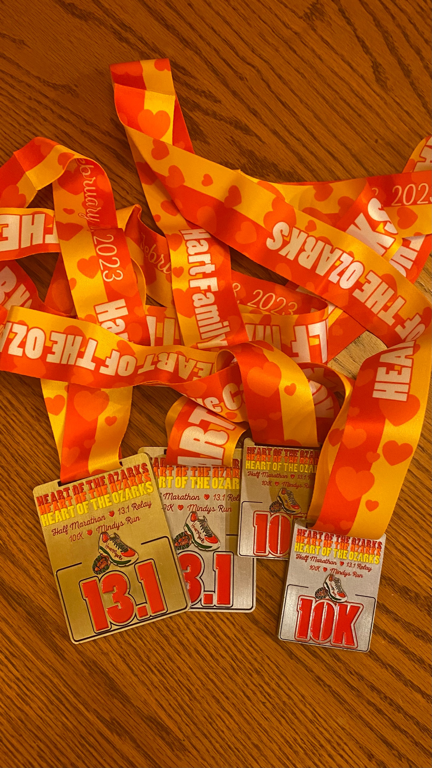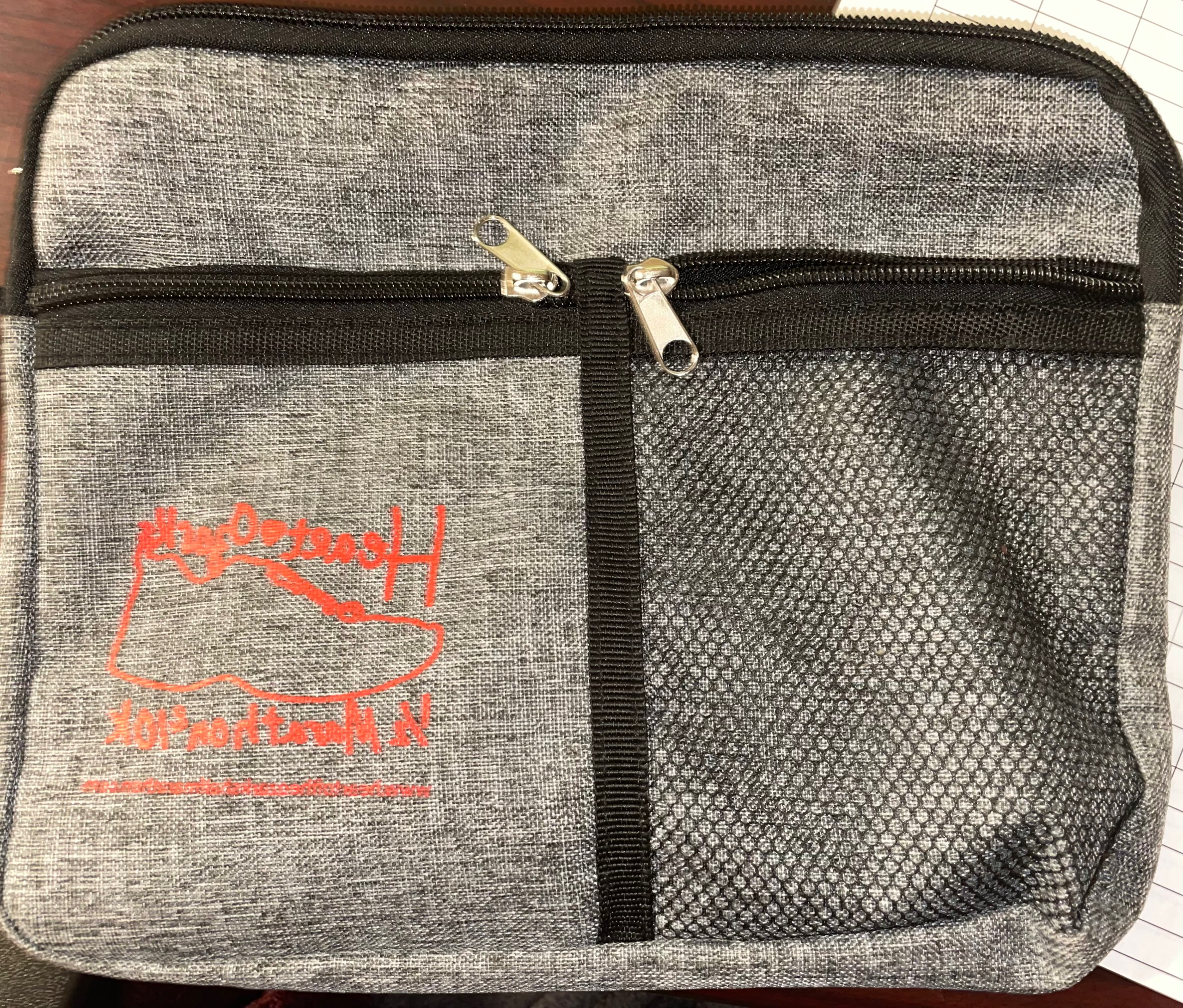 All entrants may choose one of these swag items. Choose one of any of these Heart of the Ozarks Half Marathon items. Pick between: a crew neck sweatshirt, a beanie, or a "fannie pack". All feature this year's Heart of the Ozarks theme designs.