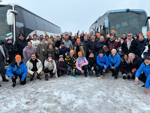Efter en stärkande frukost var det dags för välkomstmöte en trappa upp i restaurang Brasseriet. Eva Kristiansson, vd Personalstiftelsen PostNord Plus, informerade om helgens program, Patric Sahlberg tidigare PostNord-anställd, berättade om kommande skidtester i eventtältet. Även personal från Kaisers Skidbod fanns på plats och informerade om helgens erbjudanden. Christer Andersson, event- och partneransvarig, och Eva Lindsten, ekonomi- och bokningsansvarig, från stiftelsen delade ut en mycket uppskattad och mycket orange 15-årsjubileumstoppluva till alla deltagare.