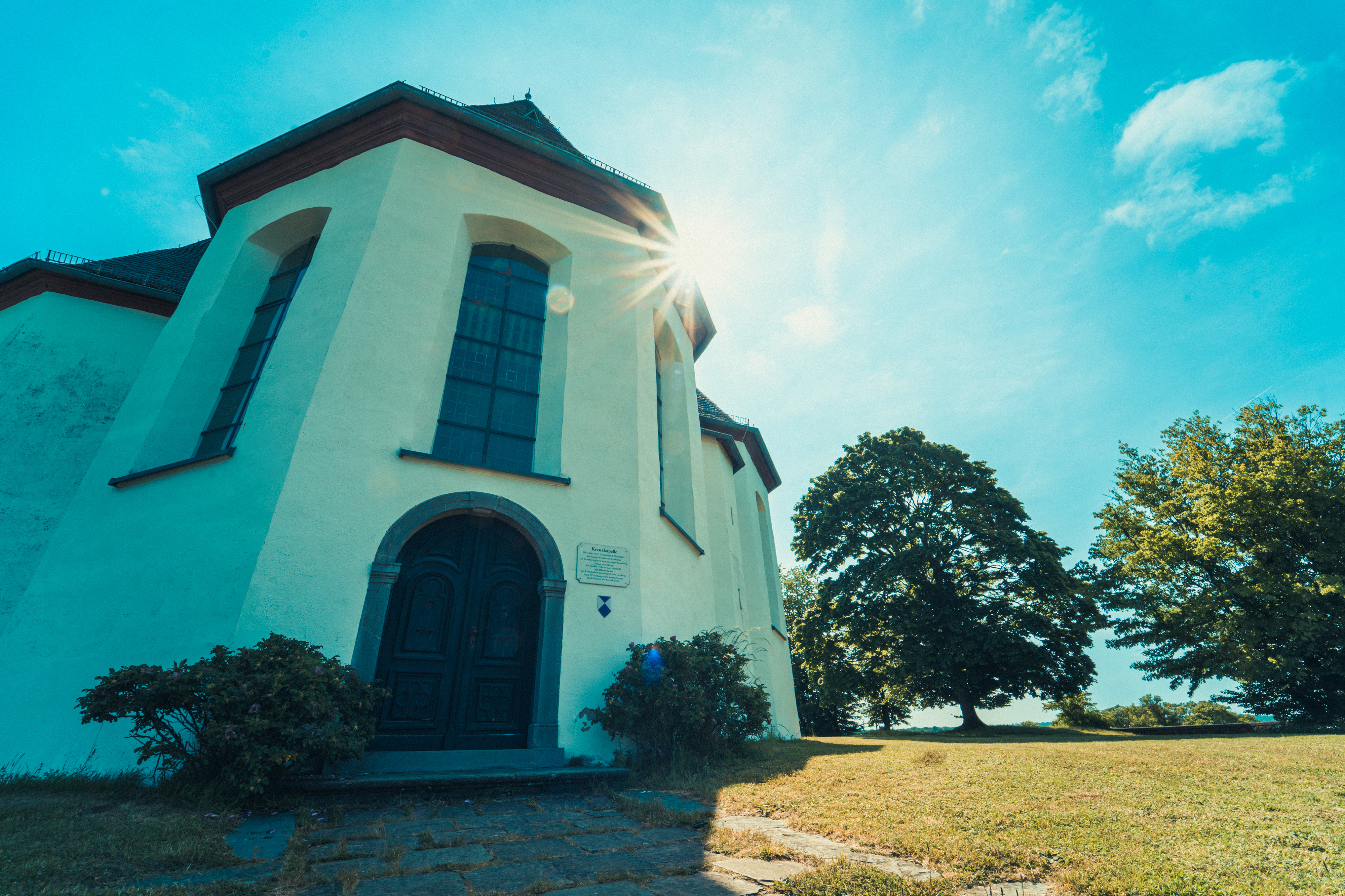 Die Kreuzkapelle in Bad Camberg präsentiert sich als regelmäßiger Zentralbau in Form eines griechischen Kreuzes mit dreiseitig schließenden Armen, hohen Walmächern und einem anmutigen Vierungstürmchen. Ein besonderes Juwel verbirgt sich unter dem erhöhten Chor - eine gewölbte Krypta, die in den Felsen gehauen wurde und dem Heiliggrab sowie der Kreuzreliquie gewidmet ist.
