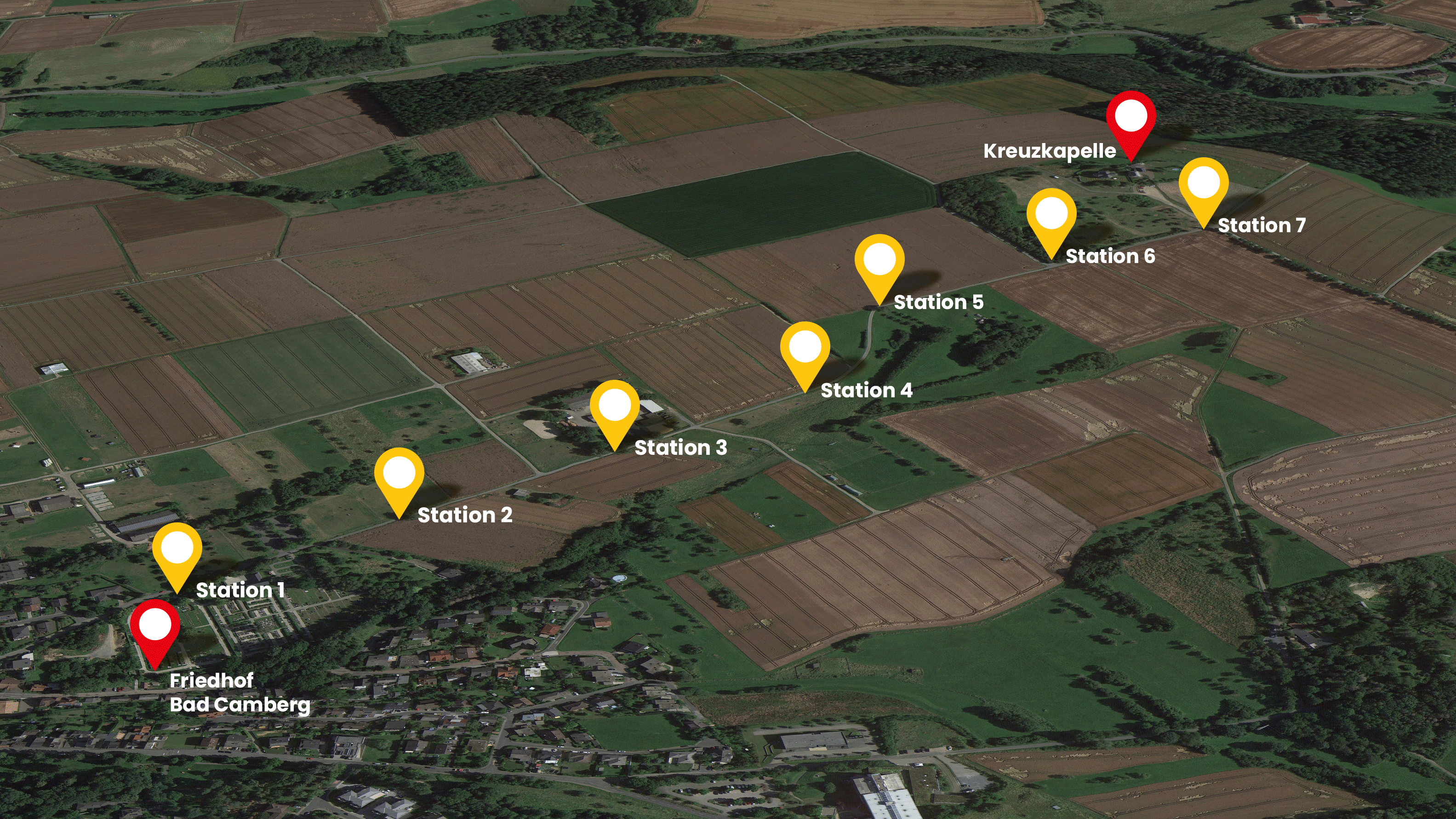 Die Kreuzkapelle, das Wahrzeichen von Bad Camberg und des Goldenen Grundes, thront majestätisch auf einem 320 m hohen Berg im nord/östlichen Teil der Stadt. Von hier aus bietet sich ein atemberaubender Panoramablick über den gesamten Goldenen Grund, der die Besucher in seinen Bann zieht. Die Kapelle ist nicht nur ein spiritueller Ort der Stille und Andacht, sondern auch ein Ort der Schönheit und des beeindruckenden Ausblicks auf die malerische Landschaft.
