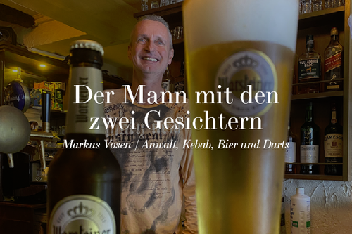Guten Kontakt hatten Markus und Burak mit Aydin und Ayse Bas, die langjährigen Betreiber des direkt gegenüber liegenden „Café Mix“, die bekannte Kultkneipe. Nach 23 Jahren entschieden sich Aydin und Ayse Bas, ihre gemütlich-urige Kneipe mit großer Theke, Tischen, Stühlen und zwei Billard-Tischen in neue Hände zu geben. „Das Café Mix hat mich immer schon von seiner Atmosphäre her an die Kölsch Kneipe meiner Großeltern und Urgroßeltern erinnert. Und so haben Burak, meine Frau Anja und ich hin und her überlegt, diese Bier-Kneipe eventuell weiterzuführen, und zwar genau so, wie sie war und nach wie vor ist. Wir haben schon einige Nächte darüber gegrübelt, aber letzten Endes fiel unsere Entscheidung einstimmig. Wir machen das und übernehmen auch zum Wohl der Gäste das angestammte Personal“, so Markus. Auch die Live-Übertragung von Fußballspielen der Bundesliga, Champions League und der Europa League bleibt unverändert. Anwalt, Kebab und Bier-Kneipe. Das zweite Gesicht des Markus Vosen zeigte zunehmend mehr Kontur. Gibt es besondere Pläne für das Café Mix? „Grundsätzlich“, meint Markus, „werden wir die Kneipe so lassen, wie sie ist. Gemütlicher kann man sie kaum machen. Allerdings planen wir mittelfristig, den Küchenraum in einen Darts-Raum umzufunktionieren, zumal wir das Essen für unsere Gäste ohnehin aus dem Krispy Kebab holen.“ Im Café Mix kann man dann nicht nur Darts spielen und trainieren, auch Darts-Turniere sind geplant. „Das wird bestimmt eine super Sache“, ist Burak überzeugt, „und darauf freuen wir uns alle jetzt schon. Bier, Billard und Darts und dazu auf Wunsch den besten Kebab der Stadt.“