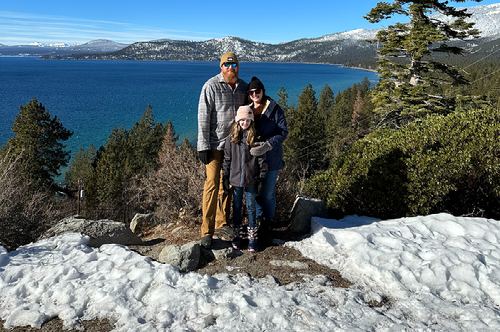 Photo: Katrina poses for a photo overlooking Lake Tahoe with her husband, Robert, and daughter, Amelia.