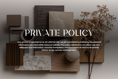 private policy Your privacy is important to us. At LARCHxLUXE, we are committed to protecting any personal information you share while using our website. This policy outlines how we collect, use, and safeguard your information, ensuring transparency and your peace of mind as we provide interior design services and inspiration.