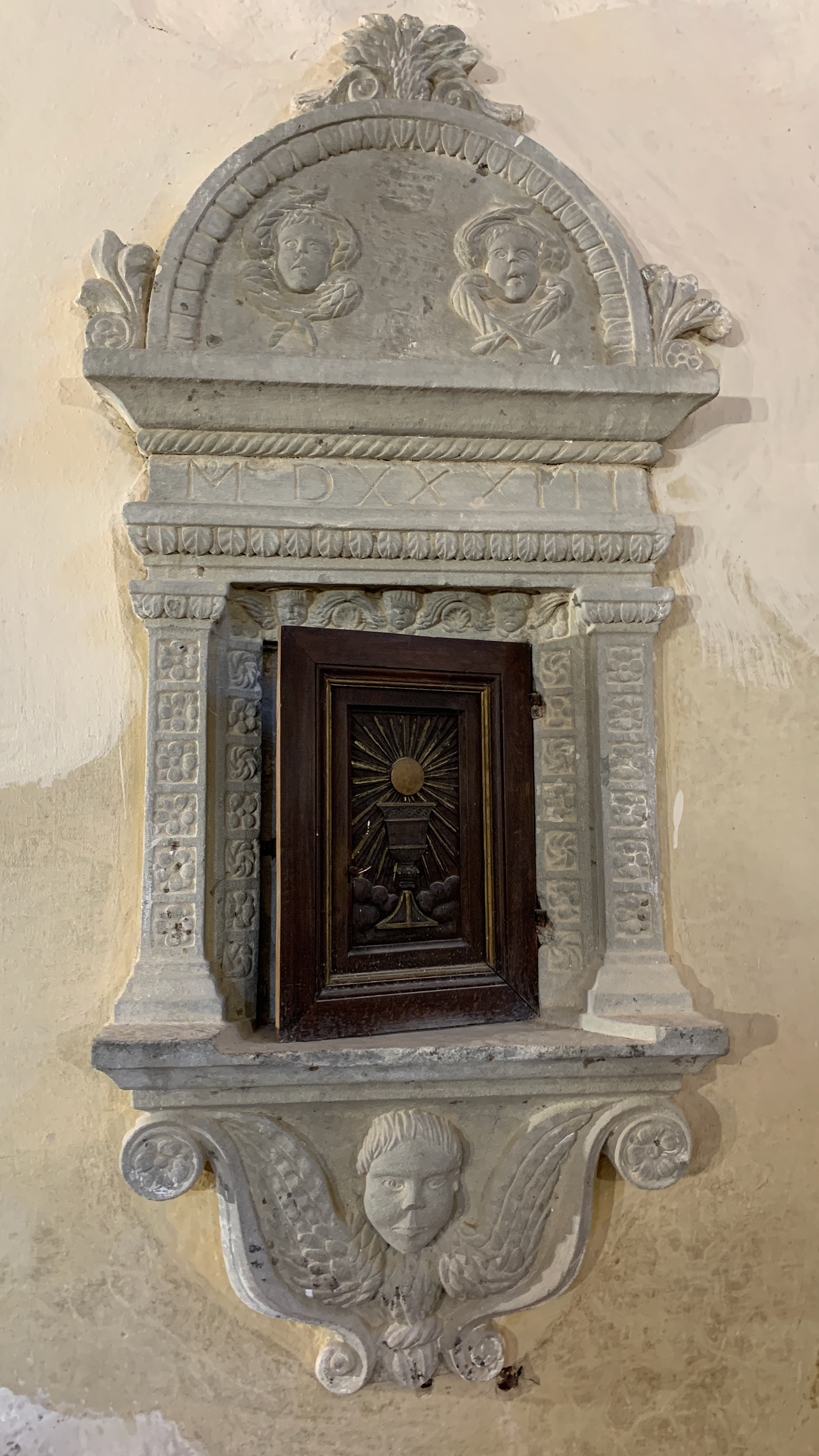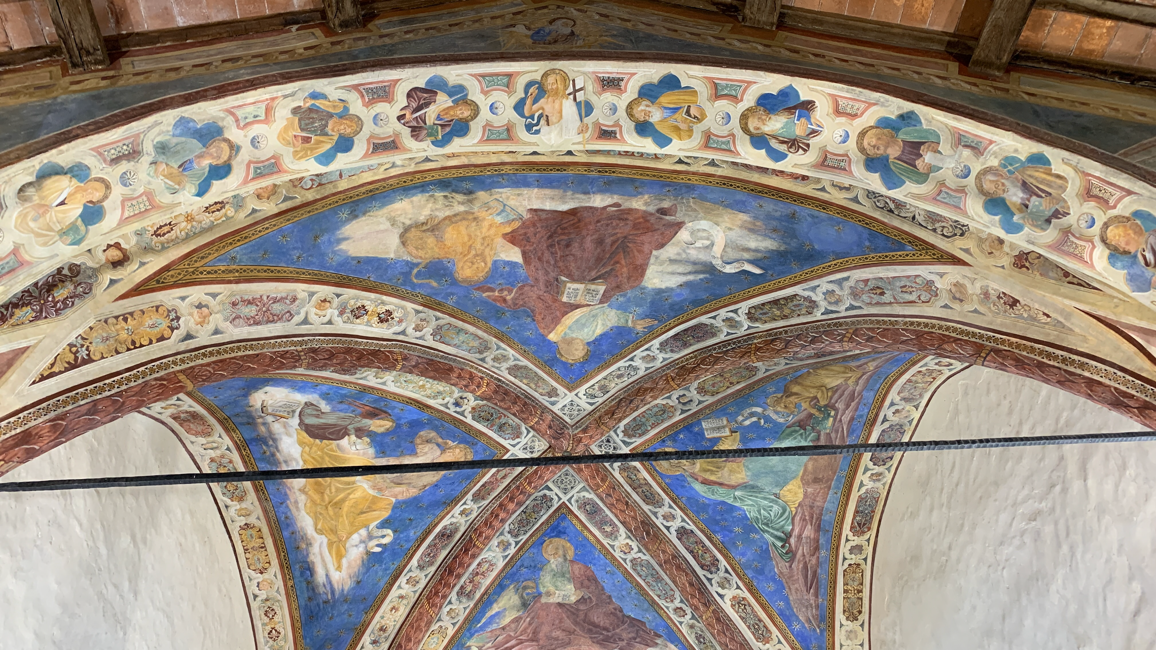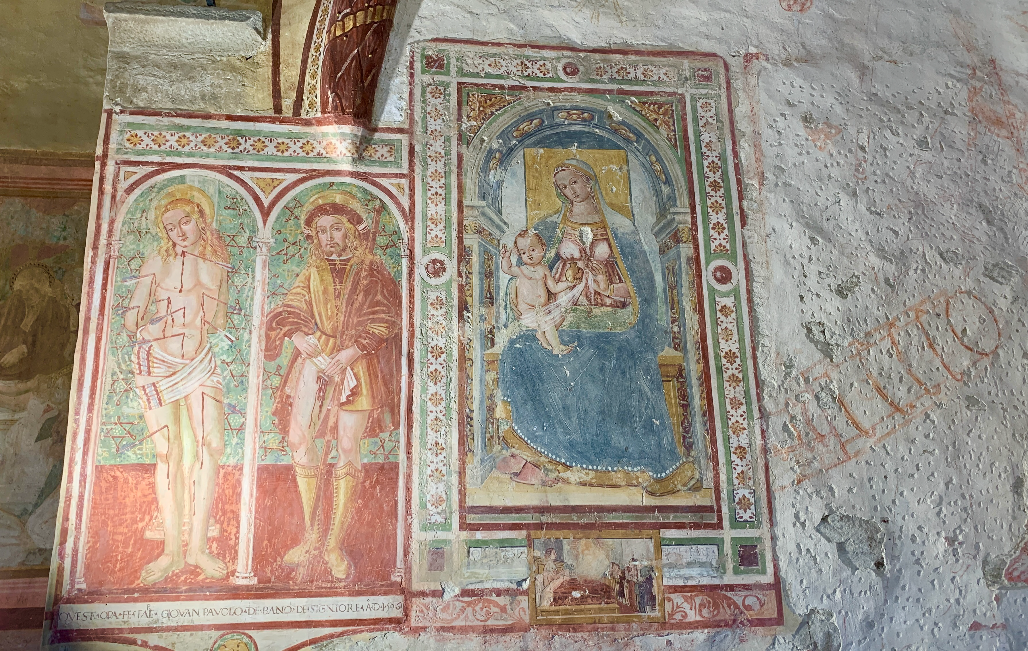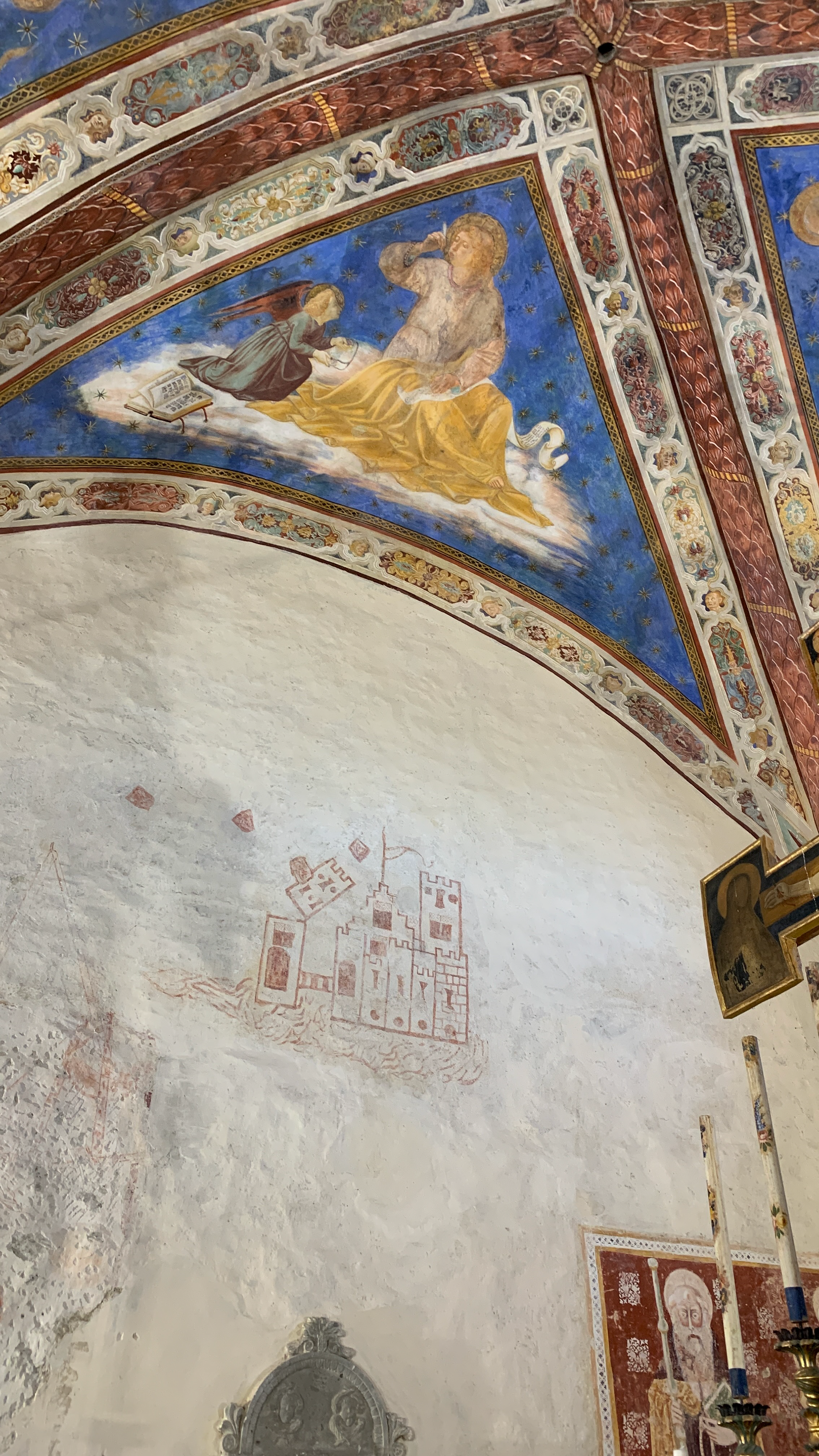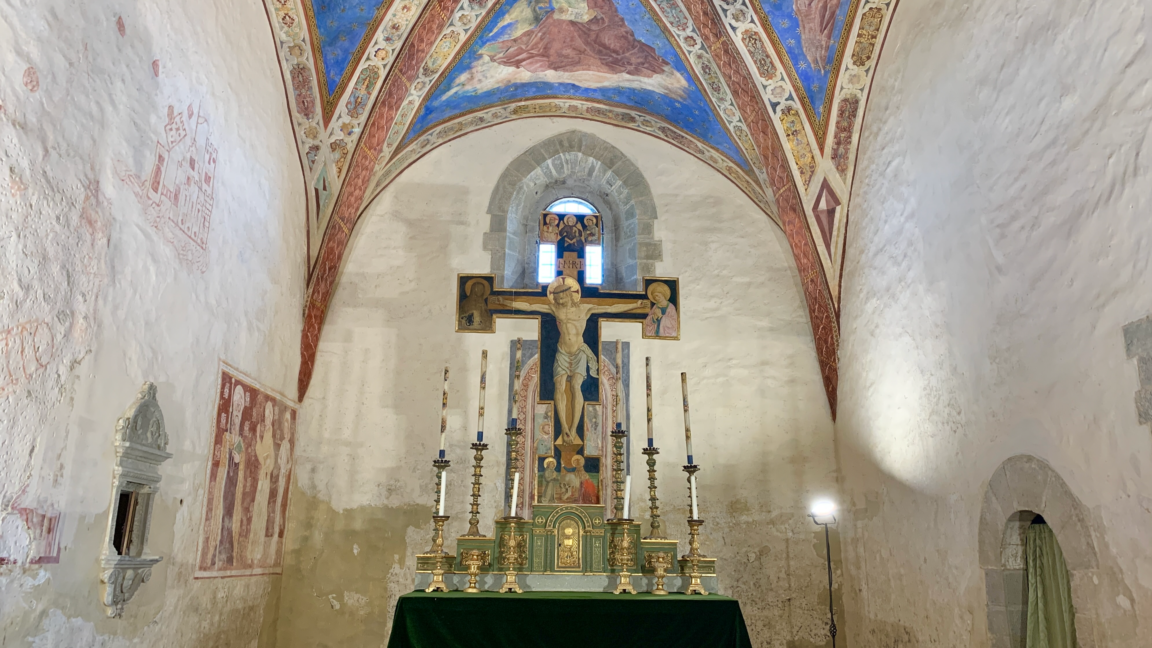 … et surtout, juste à la bonne heure, pour la visite de l’église San Michele Arcangelo construite entre le XIIe et le XIIIe siècle et renfermant de délicates fresques - un peu plus tardives - ainsi qu’un tabernacle contenant une relique le la croix du Christ.