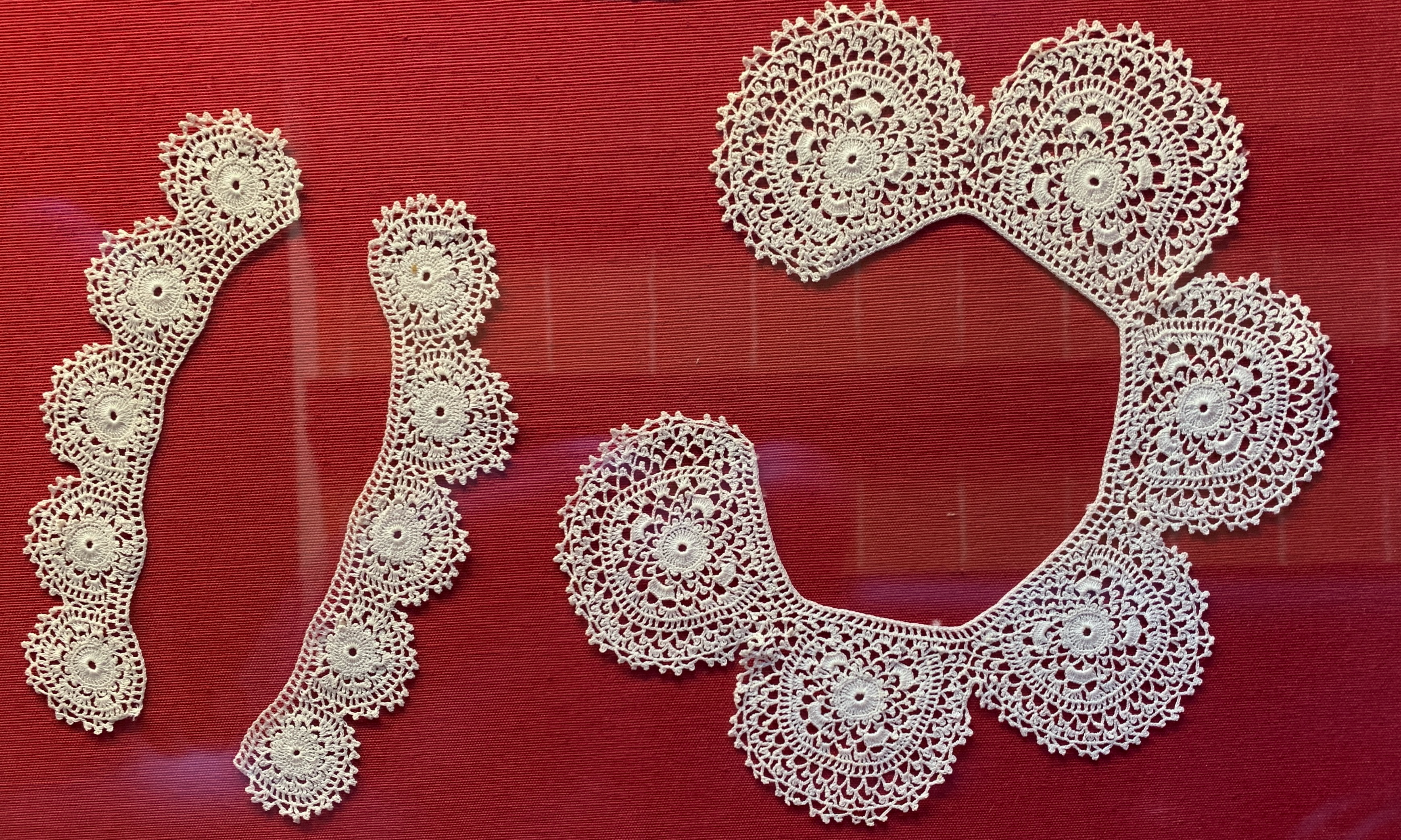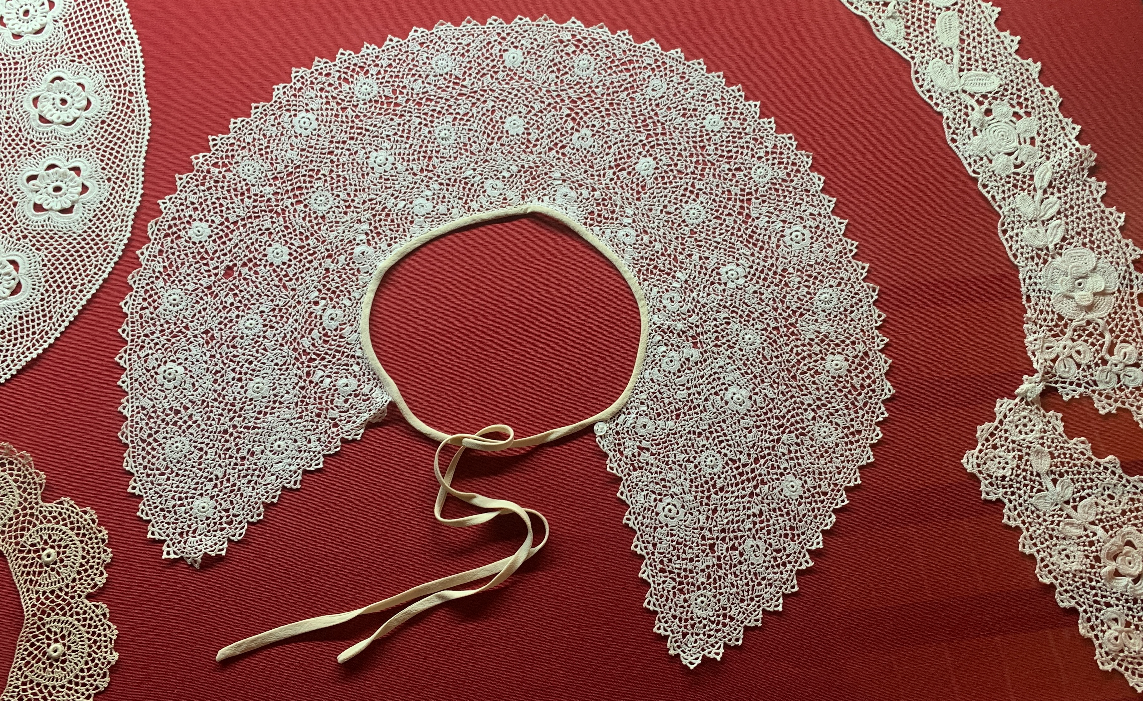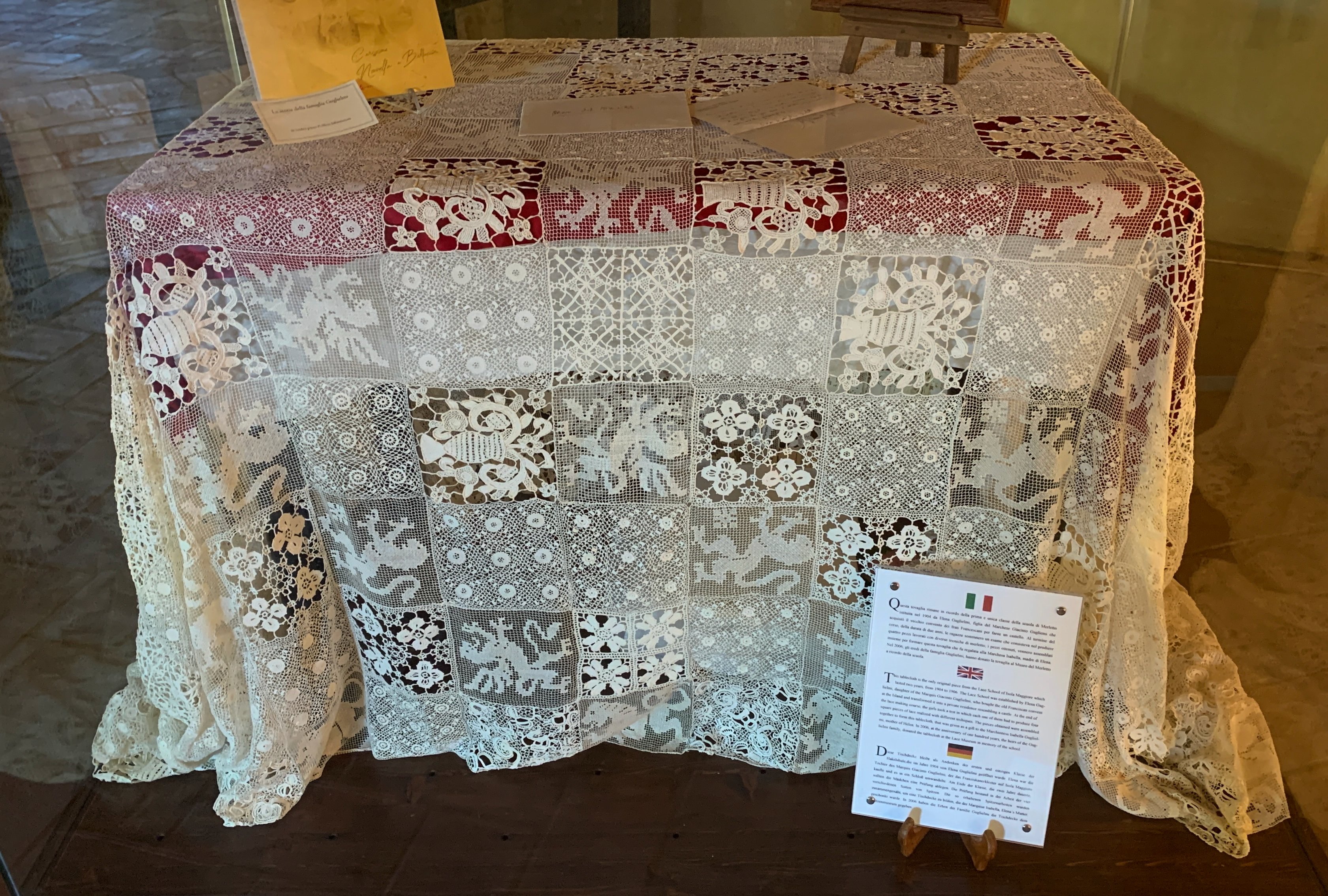 Au musée local, l’artisanat de la dentelle à l’aiguille est présenté de belle façon mettant en valeur les pièces anciennes. Cette technique et ces points seraient originaires d’Irlande avec un transit par Venezia. Il ne reste plus de dentellières mais une association fait encore vivre cette pratique locale. Avec Denise nous allons nous y mettre…