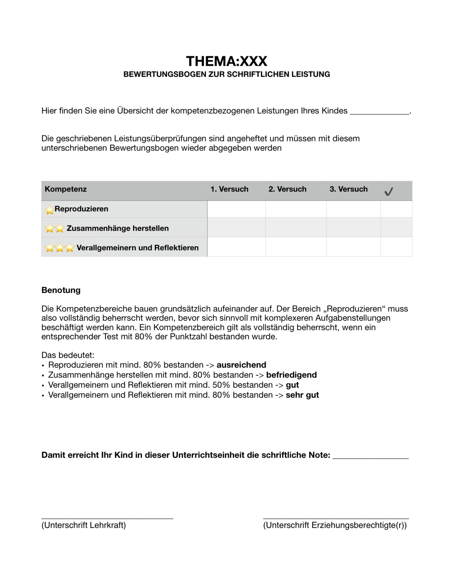 Beispiel ➡️ Bewertungsbogen für Erziehungsberechtigte nach Test 1, 2 oder 3: