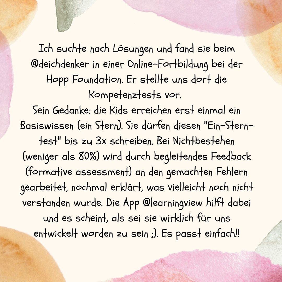 - Ich als Lehrkraft mache mir eher Gedanken, wie ich differenziere: welches Wissen muss jedes Kind ⭐️ erreichen? Was hingegen ist eher nur für ⭐️⭐️⭐️?