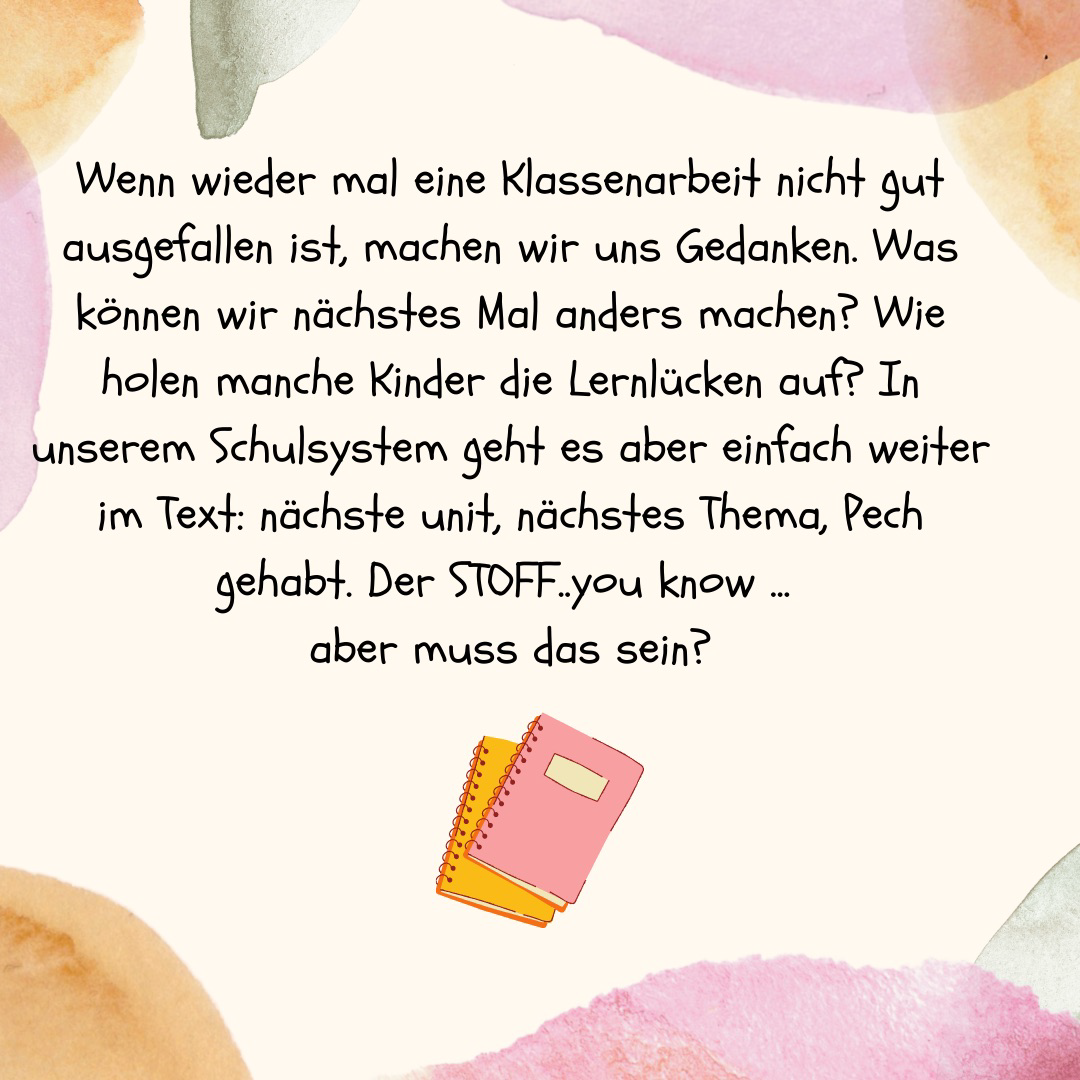 - Motivation der SuS wird sich erhöhen, da niemand gebremst wird oder nicht mitkommt.