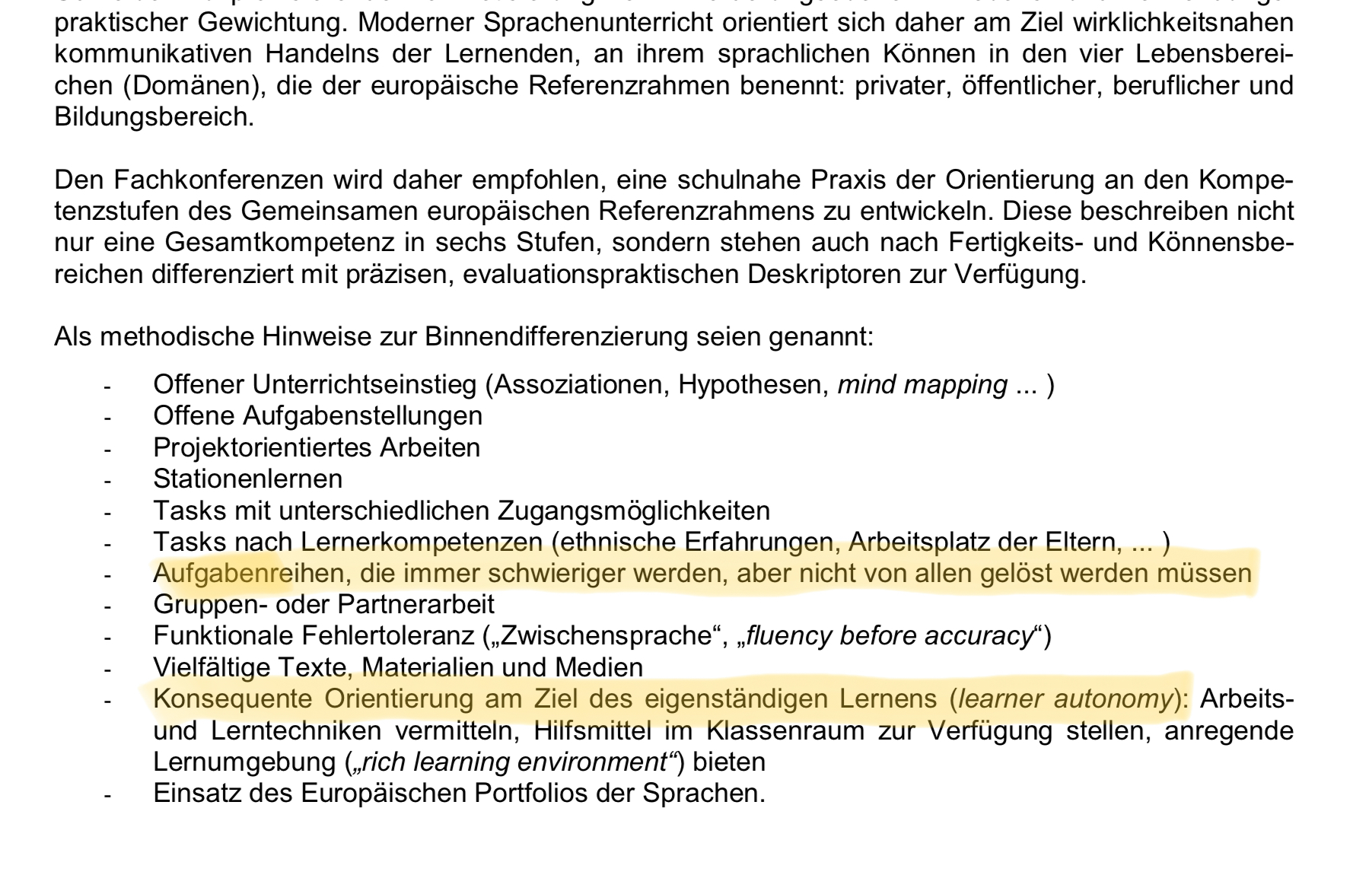 Handreichungen zum Englischunterricht schlagen folgendes vor:
