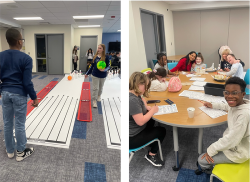 Above: Students participate in LINK and Anchor lunches where we introduced bowling equipment that will be used with our new Unified Bowling program!!!