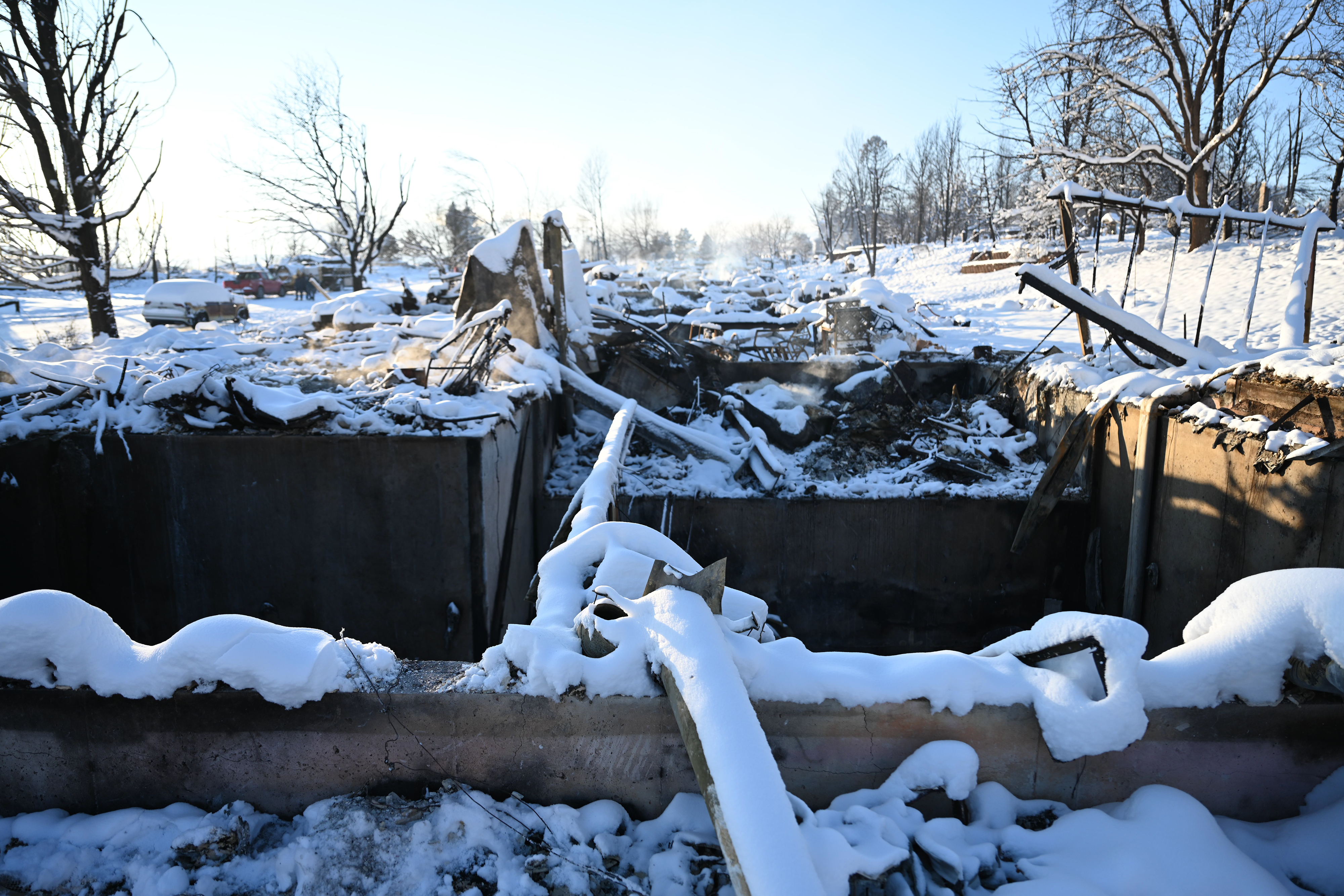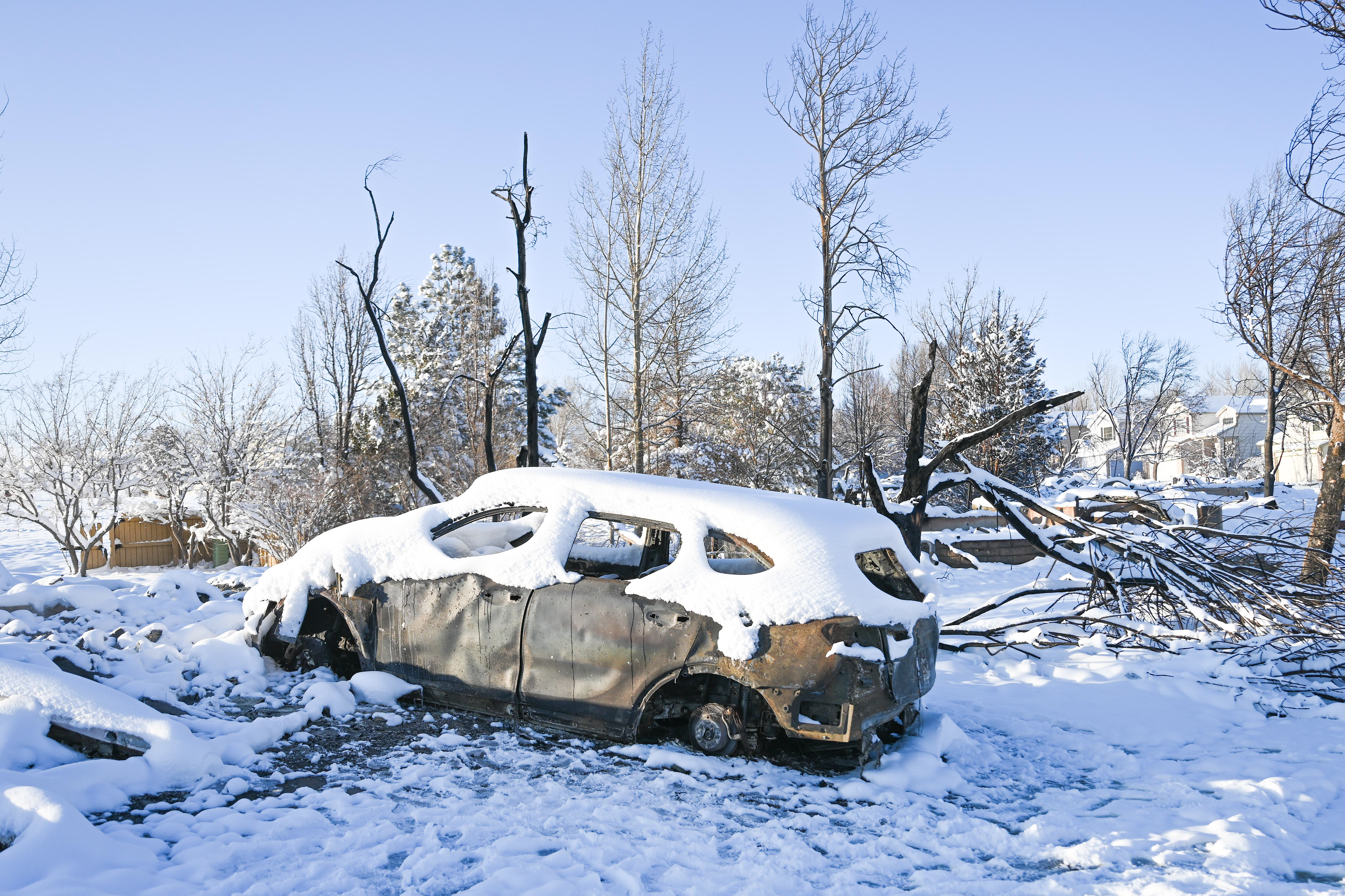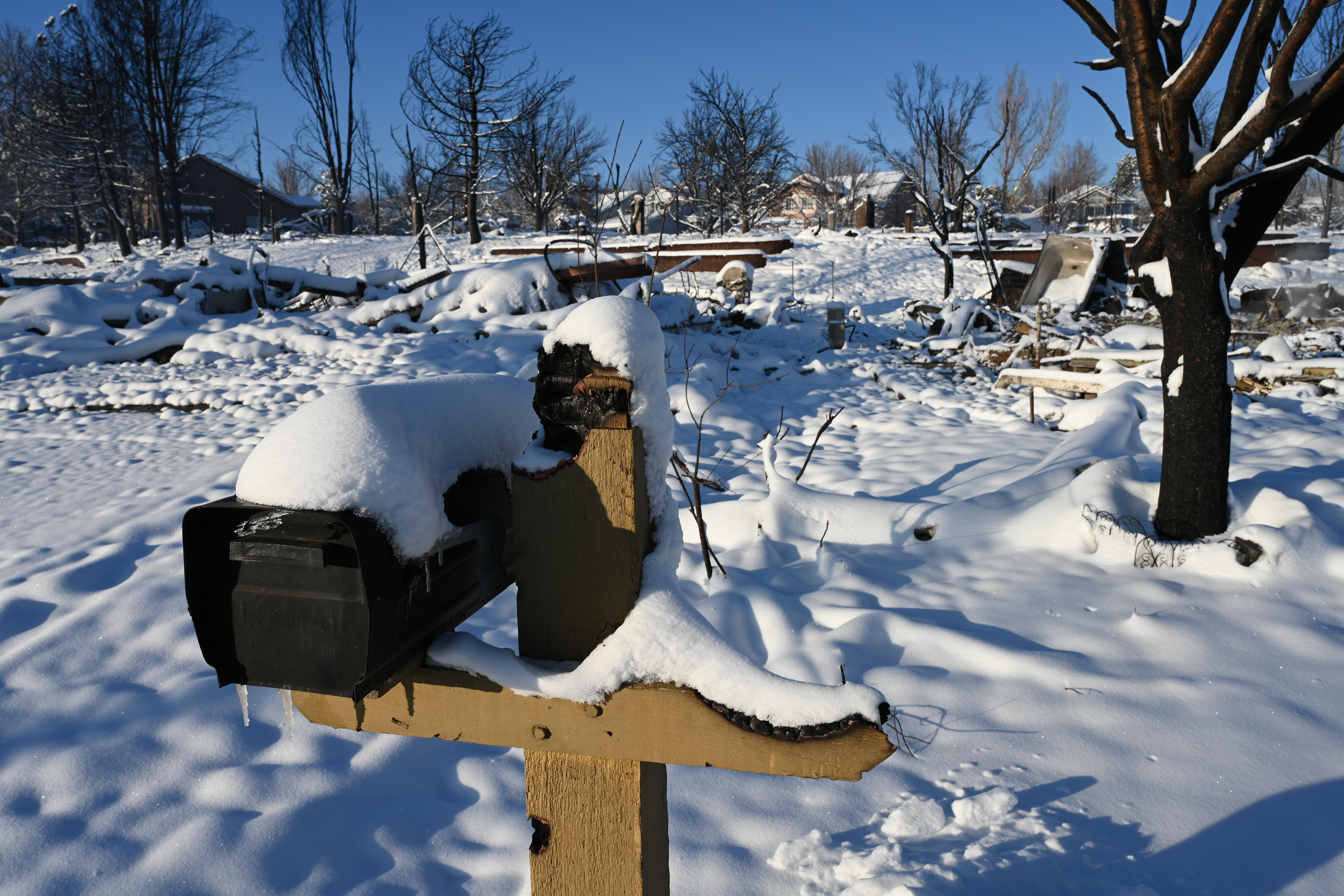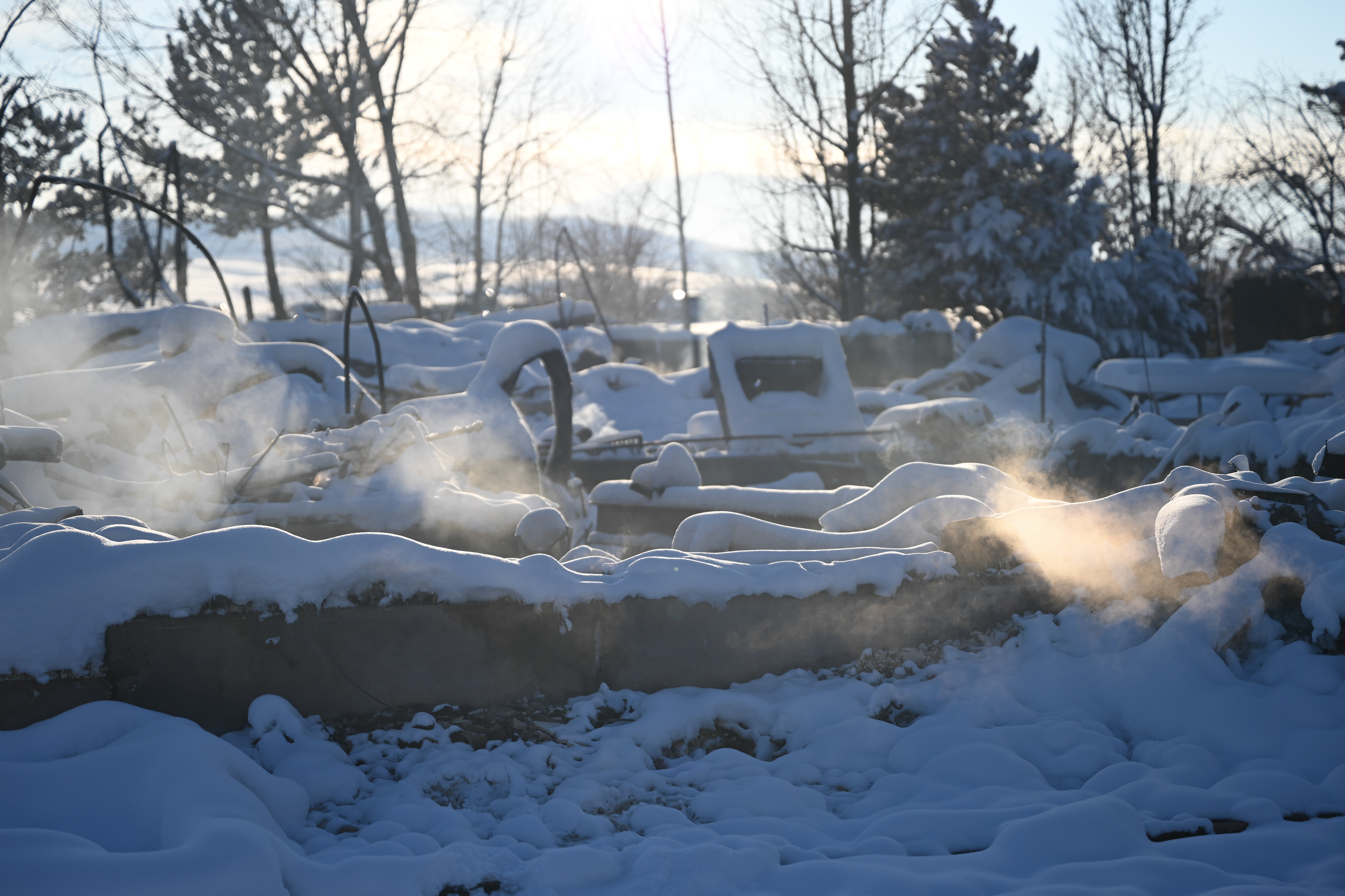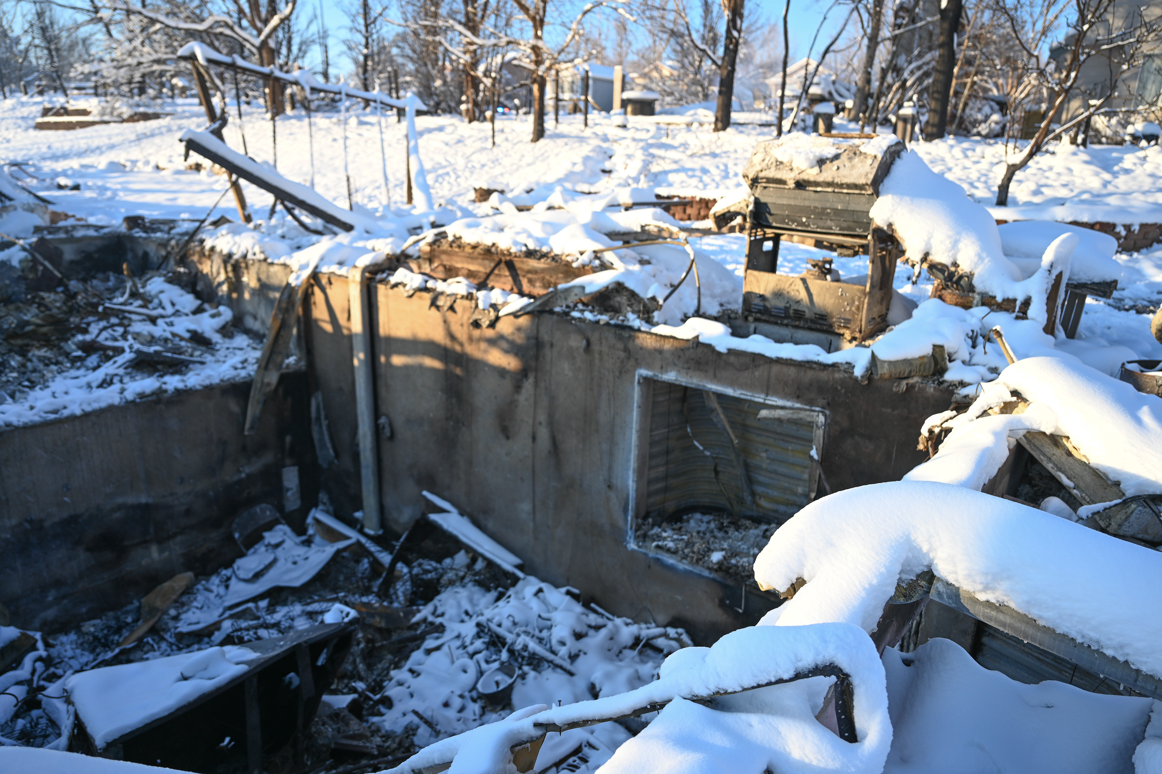 Photos below are from the Creekside housing area in Superior, Colorado. According to authorities, three hundred thirty-two homes were destroyed by the fire in this housing area. The debris and remains of burned-to-the-ground structures are covered with up to eight inches of snow. Some structures are still smoldering.