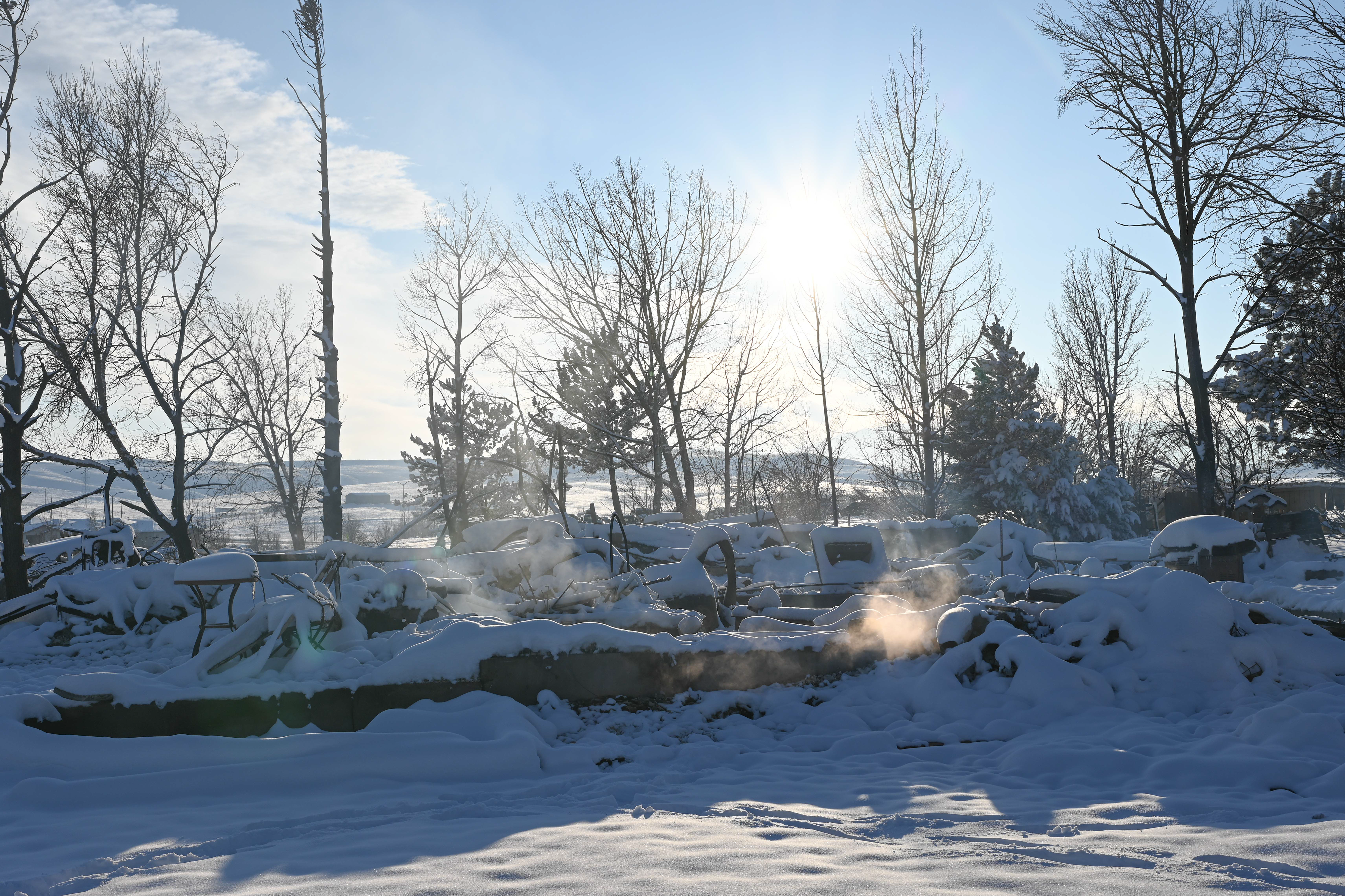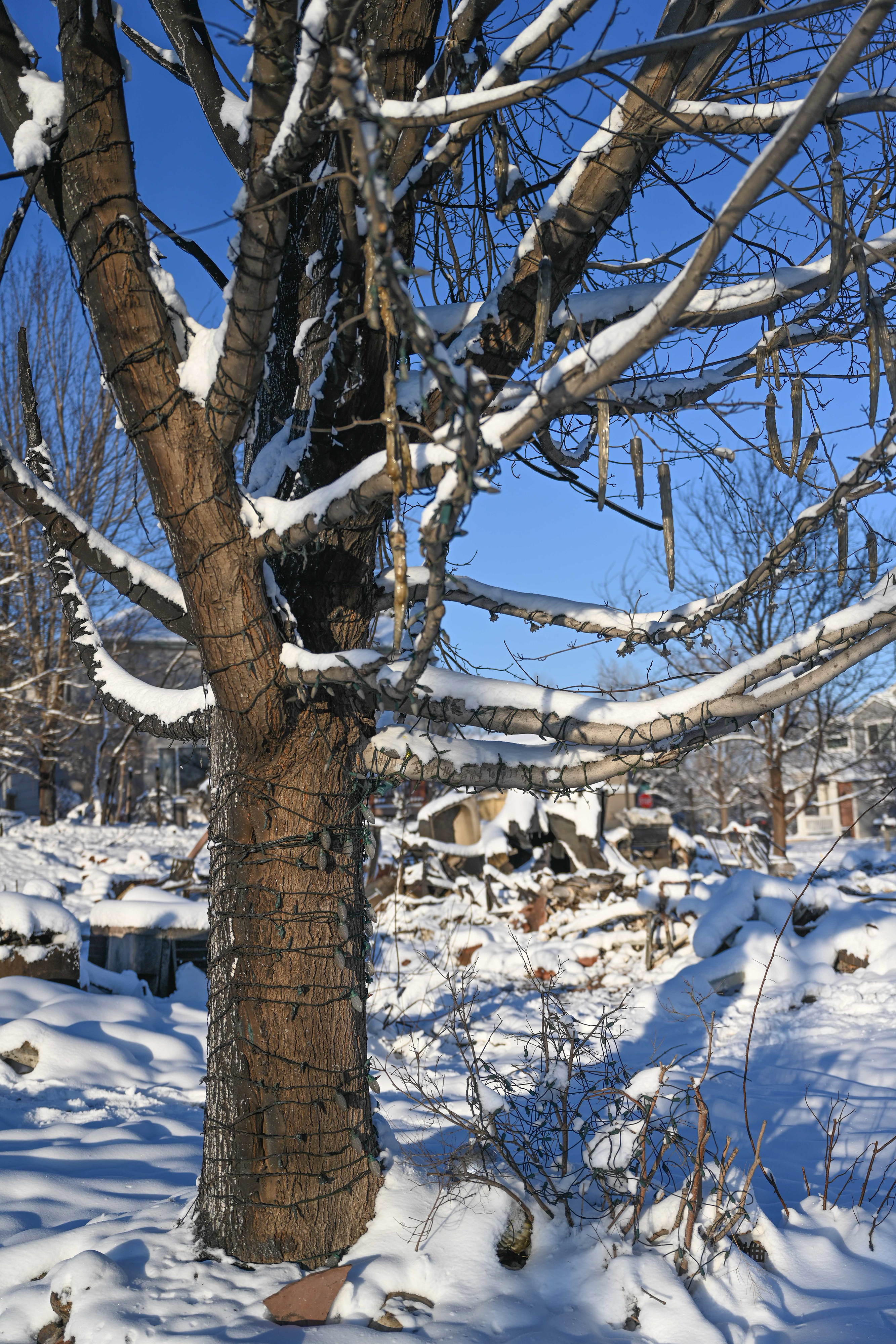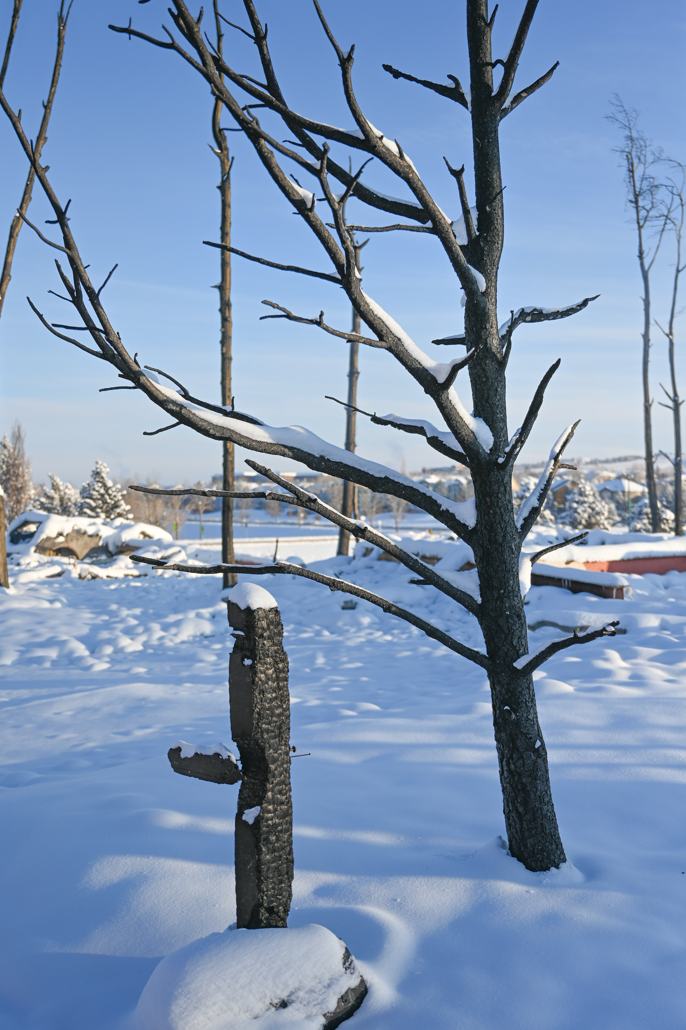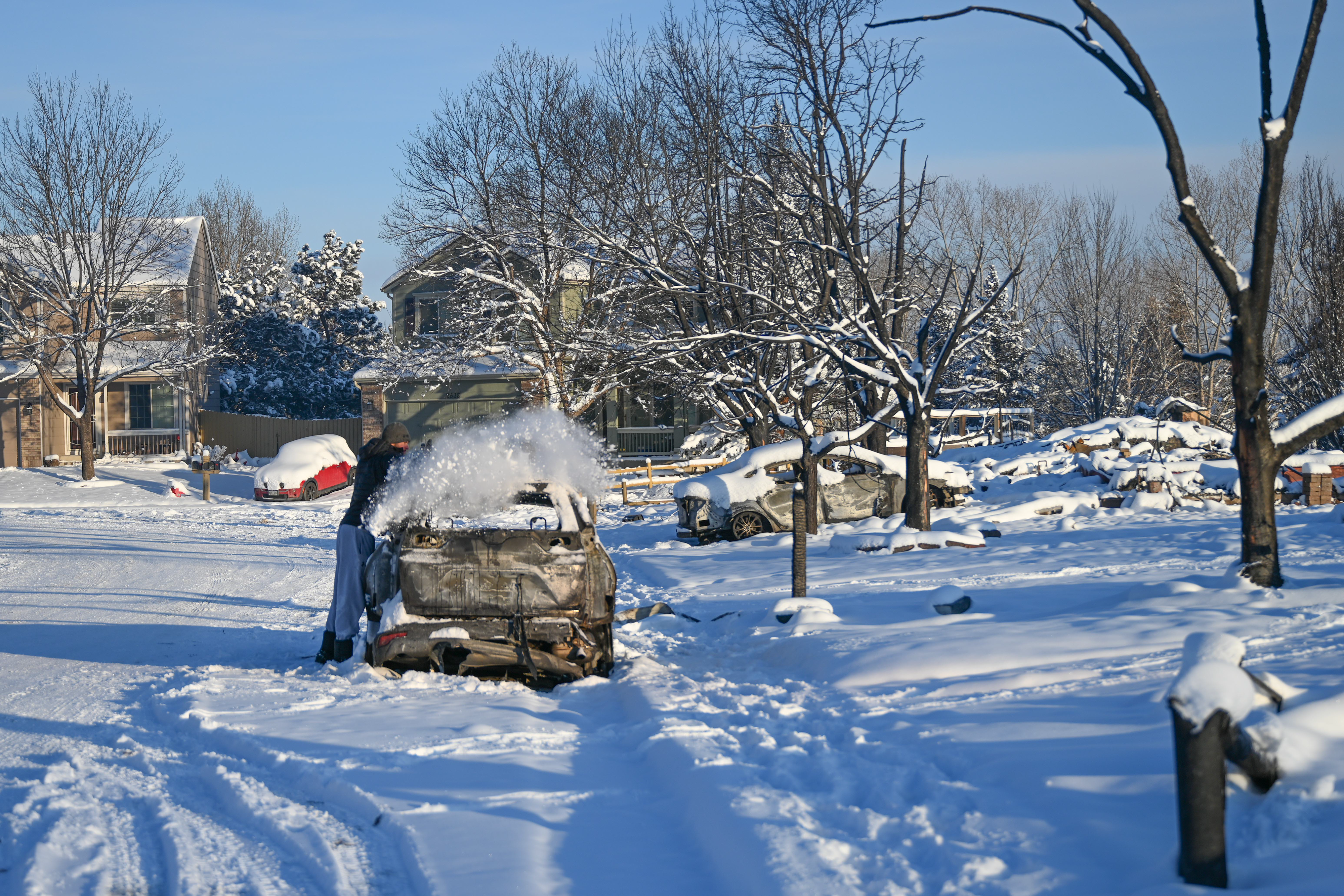 Photos below are from the Creekside housing area in Superior, Colorado. According to authorities, three hundred thirty-two homes were destroyed by the fire in this housing area. The debris and remains of burned-to-the-ground structures are covered with up to eight inches of snow. Some structures are still smoldering.