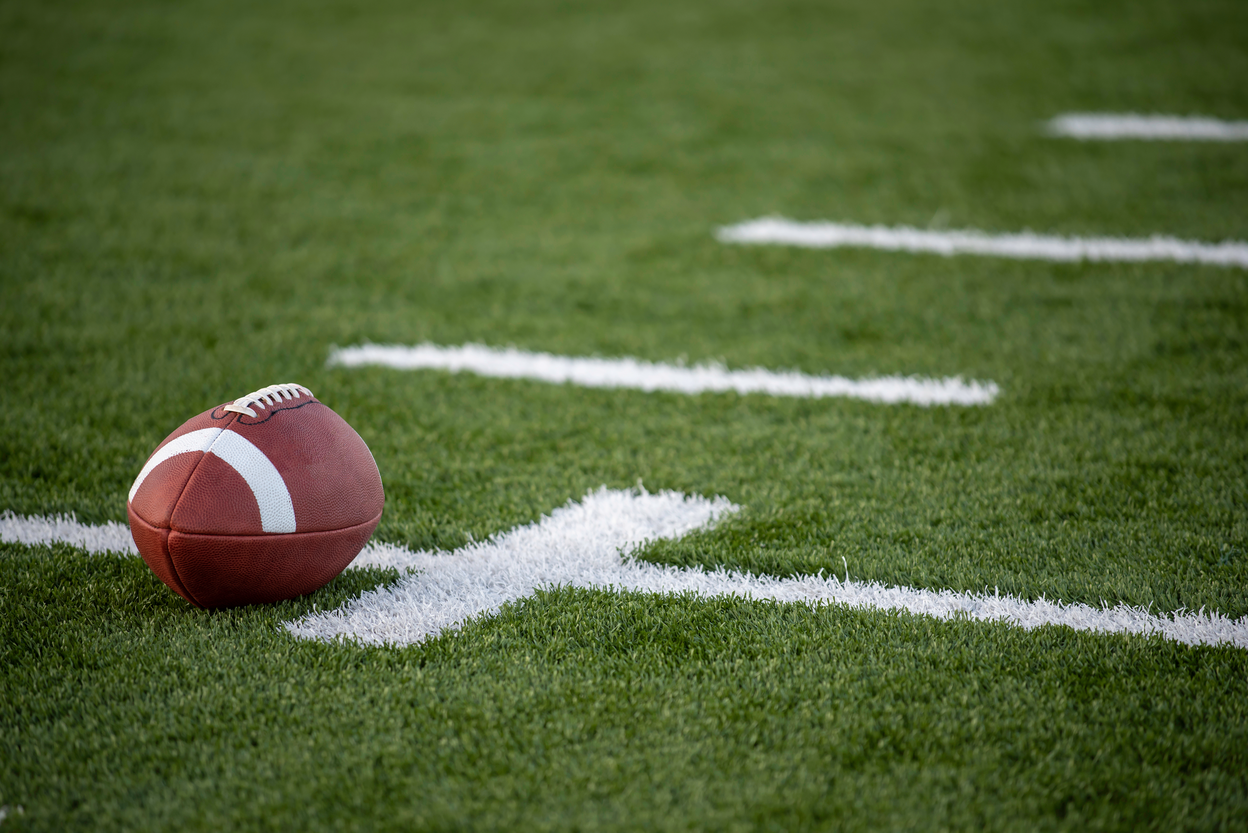 Created with images by suldev - "Positive cute robot pointing at a space. Copy space, ai generated" • jaflippo - "A brown leather american football on a green playing field" • magele-picture - "What can we do for you?"