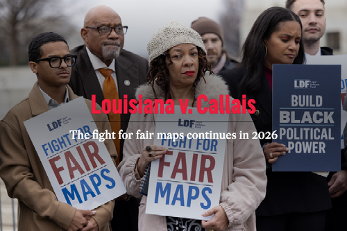 The right to vote is the cornerstone of American democracy and the Voting Rights Act (VRA) is one of our strongest tools for protecting it. Re-argued on October 15, 2025, the stakes behind LDF's case, Louisiana v. Callais, could not be higher. The case aims to overturn a congressional map where Black voters in Louisiana finally have an opportunity to elect candidates of their choice in more than one district by challenging the core of VRA anti-discrimination protections. This effort to weaken voters’ ability to remedy racially discriminatory maps is an affront to the communities who fought for generations to be heard at the ballot box and the consequences could be detrimental to the VRA as we know it. A Supreme Court decision is expected in 2026.