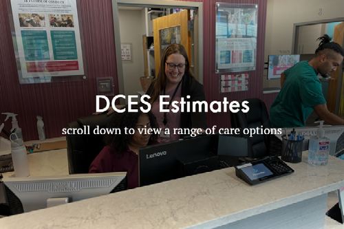 These estimates are provided to give a range of care options. Upon arrival, a detailed estimate will be provided to the owner tailored to the individual patient and will be adjusted based on the patient’s size and clinical status.