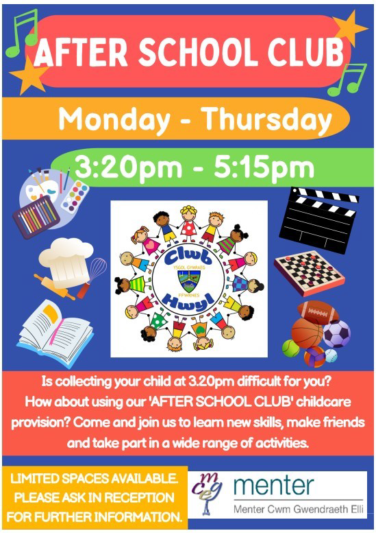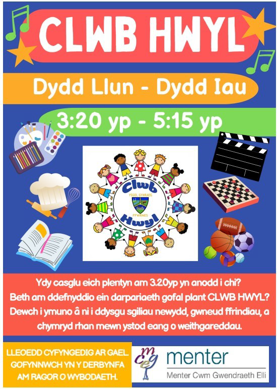 Mae clwb hwyl yr ysgol dal i redeg yn esmwyth ac o ddydd Llun i ddydd Iau. Cysylltwch a'r swyddfa am fwy o wybodaeth / The after school club is still running smoothly and from Monday to Thursday. Contact the office for more information.