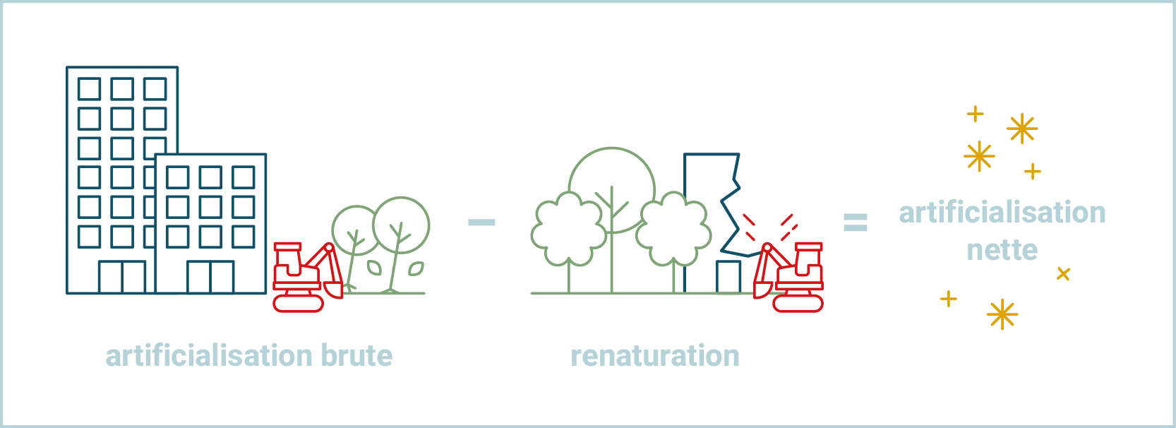 Cependant, la loi Climat et Résilience du 22 août 2021 change le regard porté sur les sujets fonciers. Elle propose notamment de passer du concept de maîtrise de l’étalement urbain, à la préservation des sols, avec un objectif de «Zéro artificialisation nette» qui invite les territoires à réduire fortement leur consommation foncière d’ici à 2050.