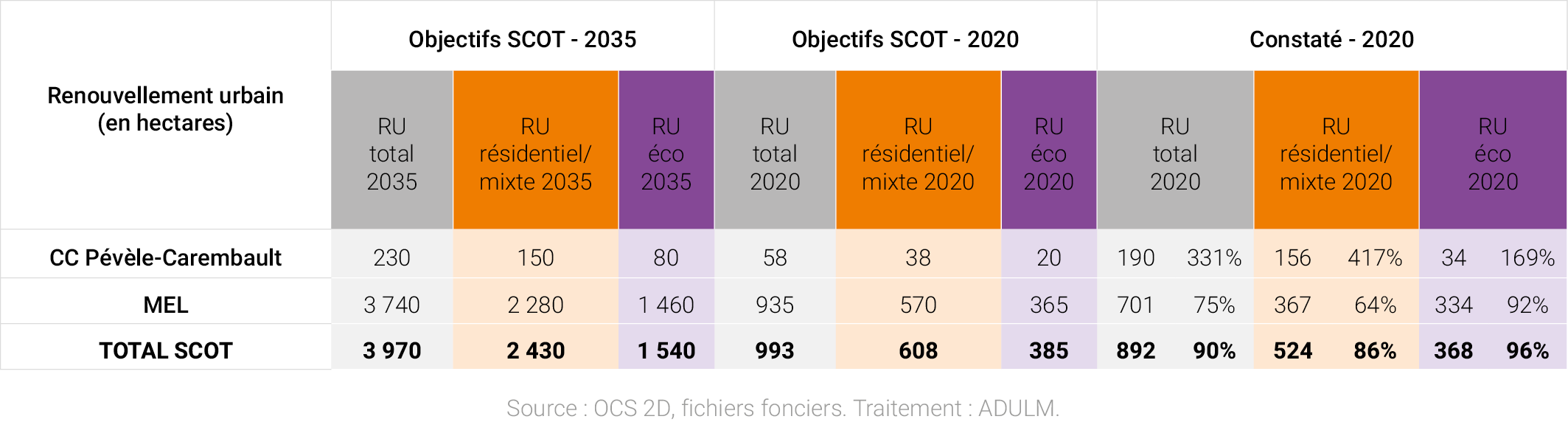En matière de consommation foncière et d’adéquation aux objectifs inscrits dans le SCOT, ce premier bilan à 6 ans est donc tout à fait remarquable. Il montre les premiers signes tangibles de mise en œuvre concrète de ses objectifs et orientations.