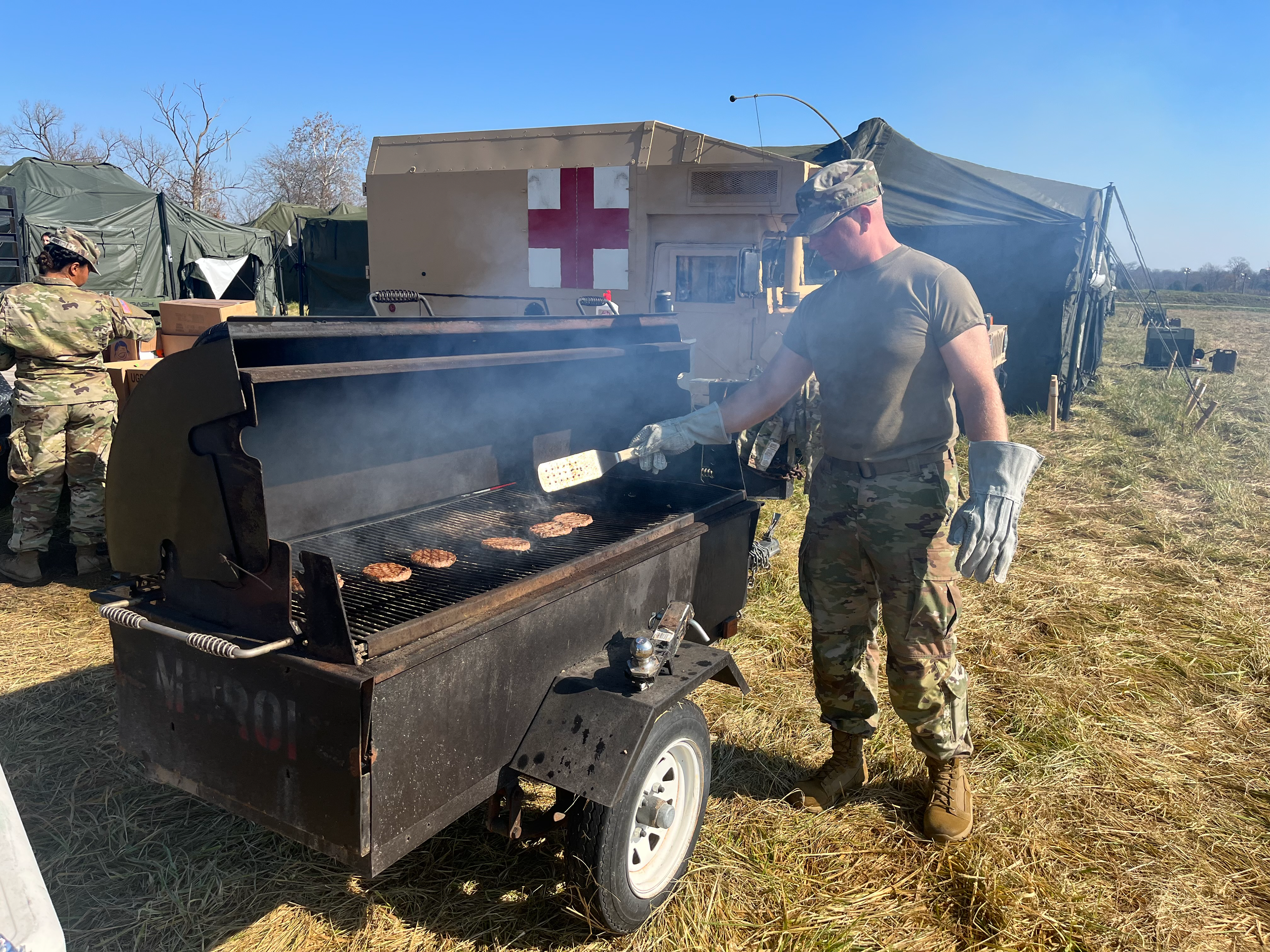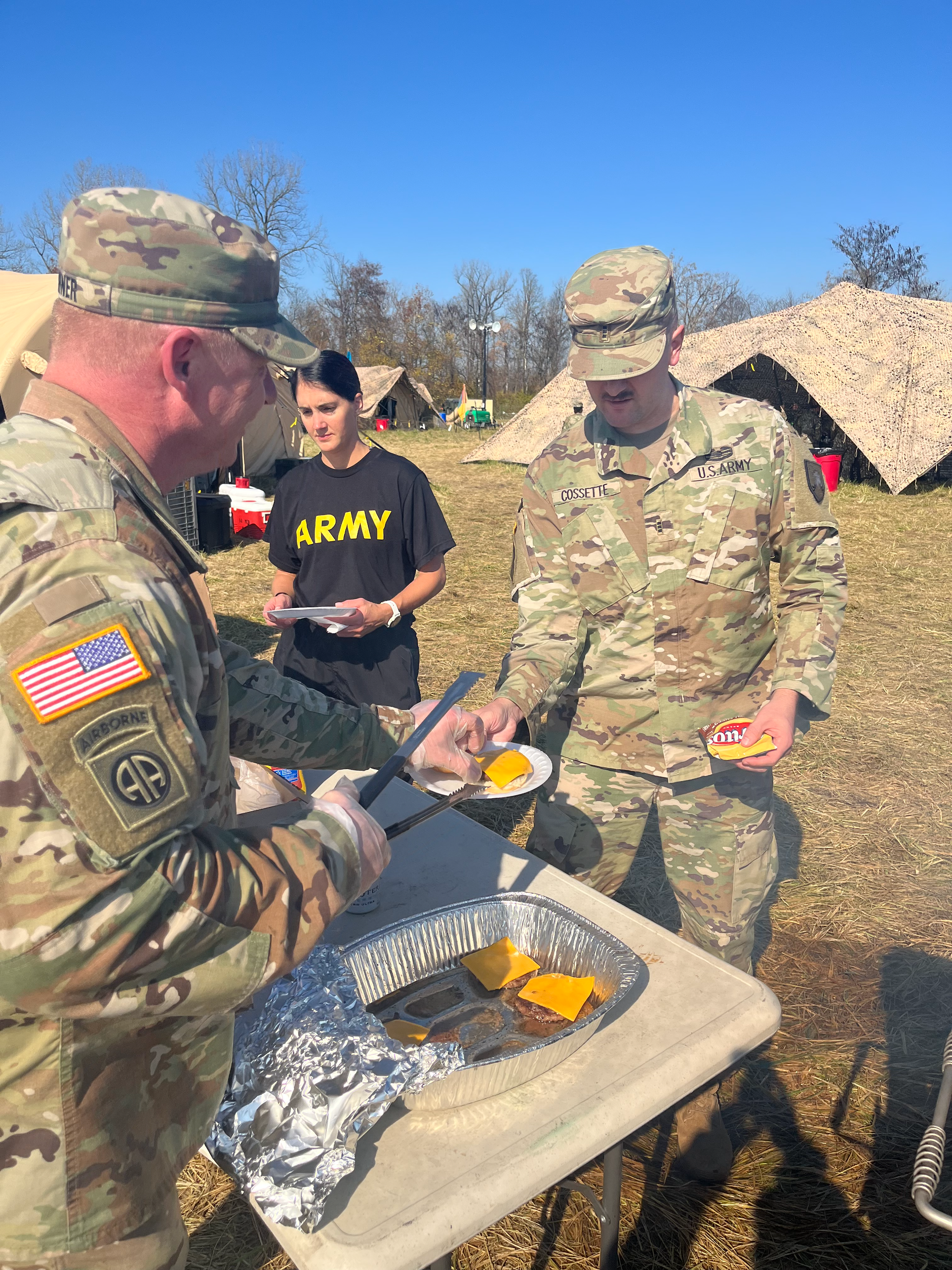 The Indiana USO provided an outdoor lunch for Soldiers of the 141st Maneuver Enhancement Brigade (MEB) during their Warfighter exercise at Camp Atterbury, Indiana, Nov. 1, 2022. Soldiers and leaders thanked the USO for their role in boosting the morale of the troops. (National Guard story and photos by Sgt. 1st Class Ashley Johlfs, 141st Maneuver Enhancement Brigade)