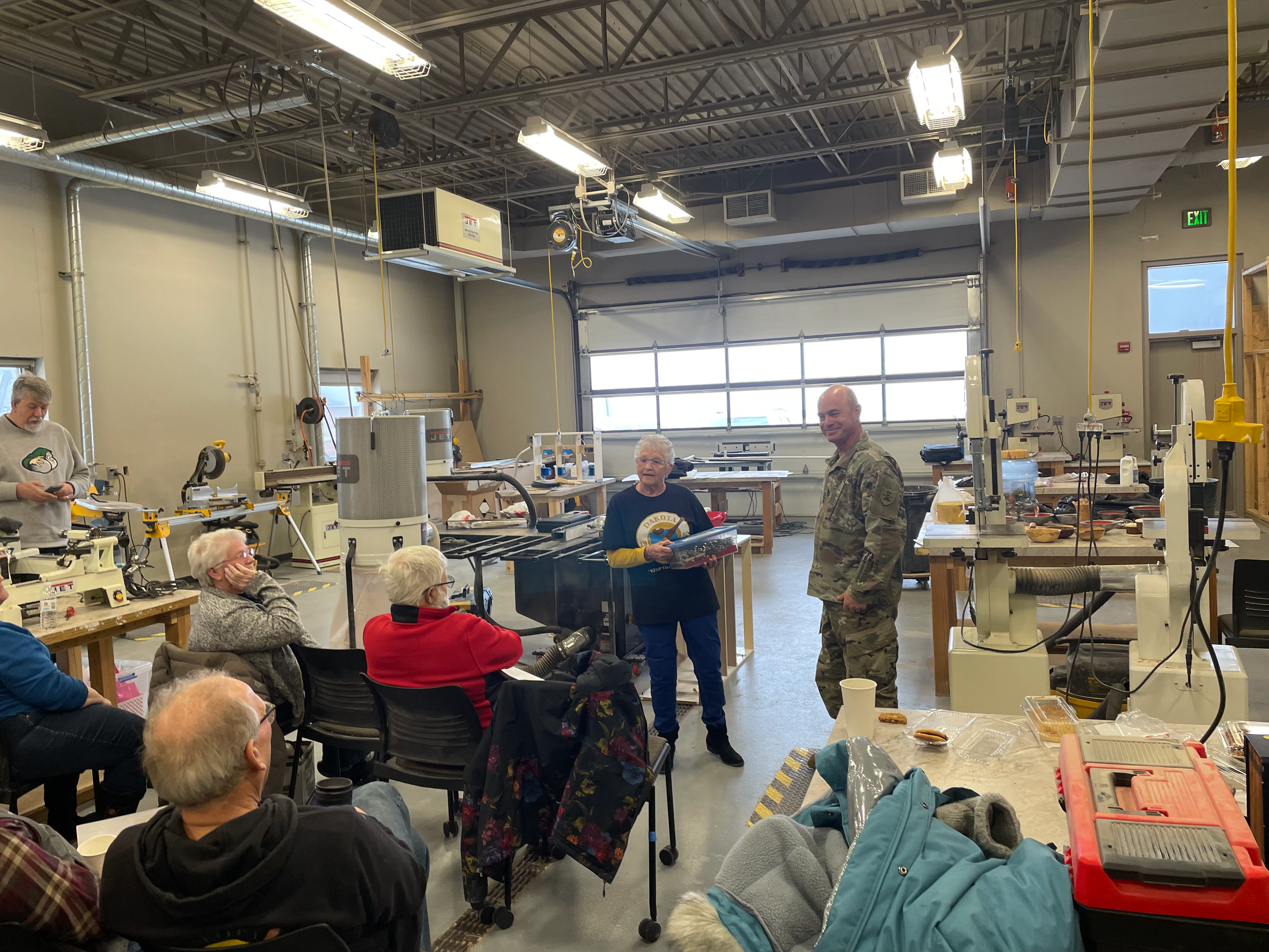 The Dakota Woodturners presented 150 hand-turned wood pens crafted by the club members to the National Guard at their monthly meeting, Nov. 12, 2022, Bismarck, N.D. (Courtesy story by Jeanette Erickson)