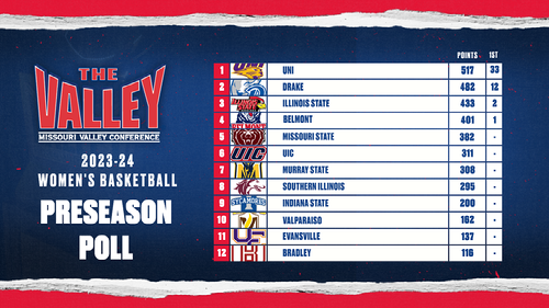 UNI received 33 of 48 first-place votes and 517 total points, out-distancing Drake (482, 12 1st place votes) and Illinois State (433, 2 1st place votes).