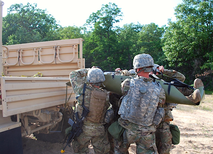 During annual training in Camp Grayling, Mich., the 3662nd Support Maintenance Company (SMC) conducted a vehicle recovery during convoy operations in a simulated combat environment. The unit is participating in operation Northern Strike 19. With more than 6,000 participants from 10 countries and 22 states, Northern Strike is one of the Department of Defense’s largest Joint, Reserve-component exercises. This event was hosted by Camp Grayling Joint Maneuver Training Center and Aleena Combat Readiness Training Center, as well as over the skies of northern Michigan and Lake Huron. Top photo: A 3662nd SMC Soldier responds to a simulated attack on his convoy on July 27 at Camp Grayling during operation Northern Strike 19.