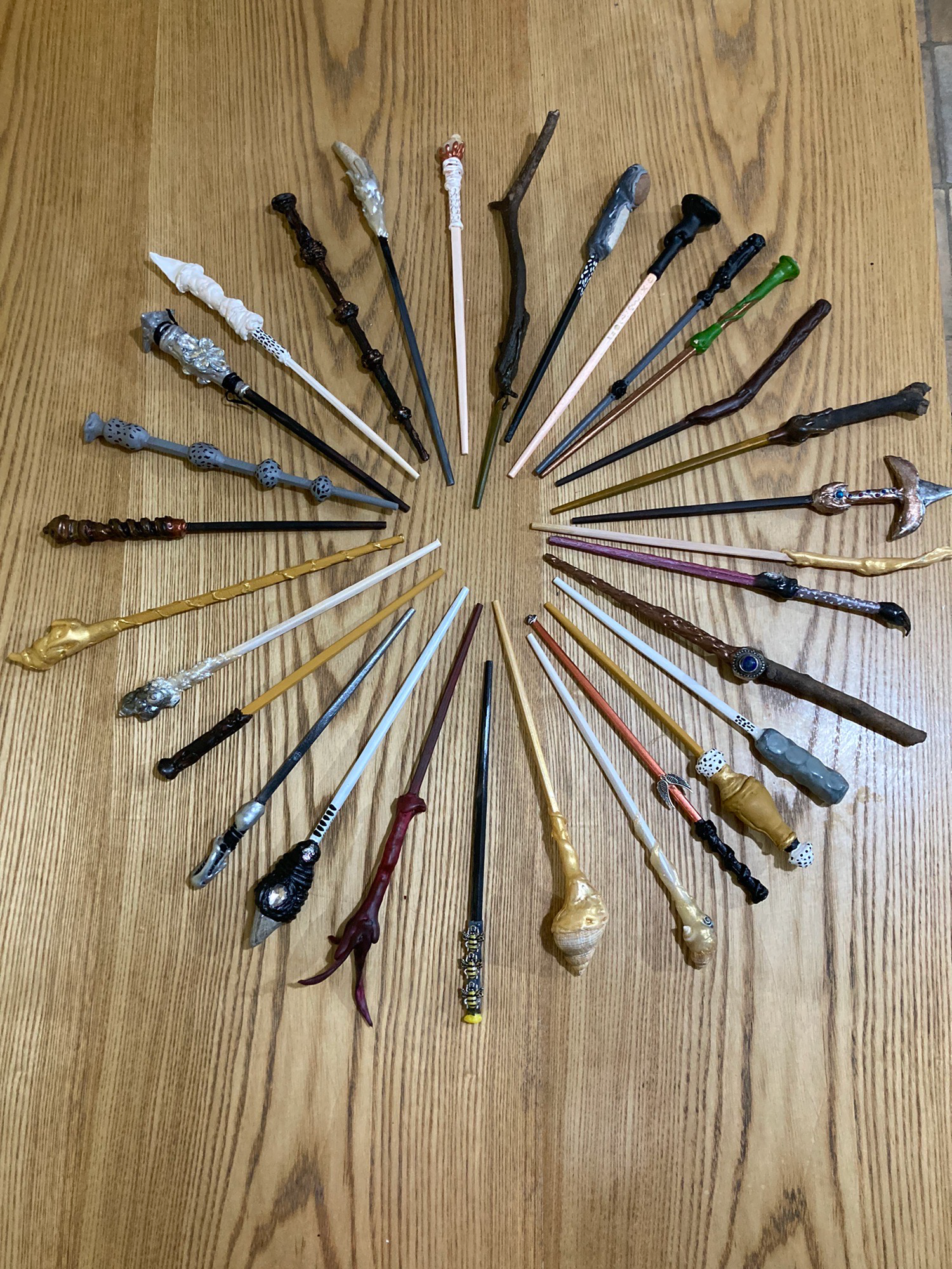 It contained 30 individual wands, made by the gifted wand maker Garrick Ollivander (they were actually made in my kitchen using chops sticks and hot glue... but don't tell anyone).