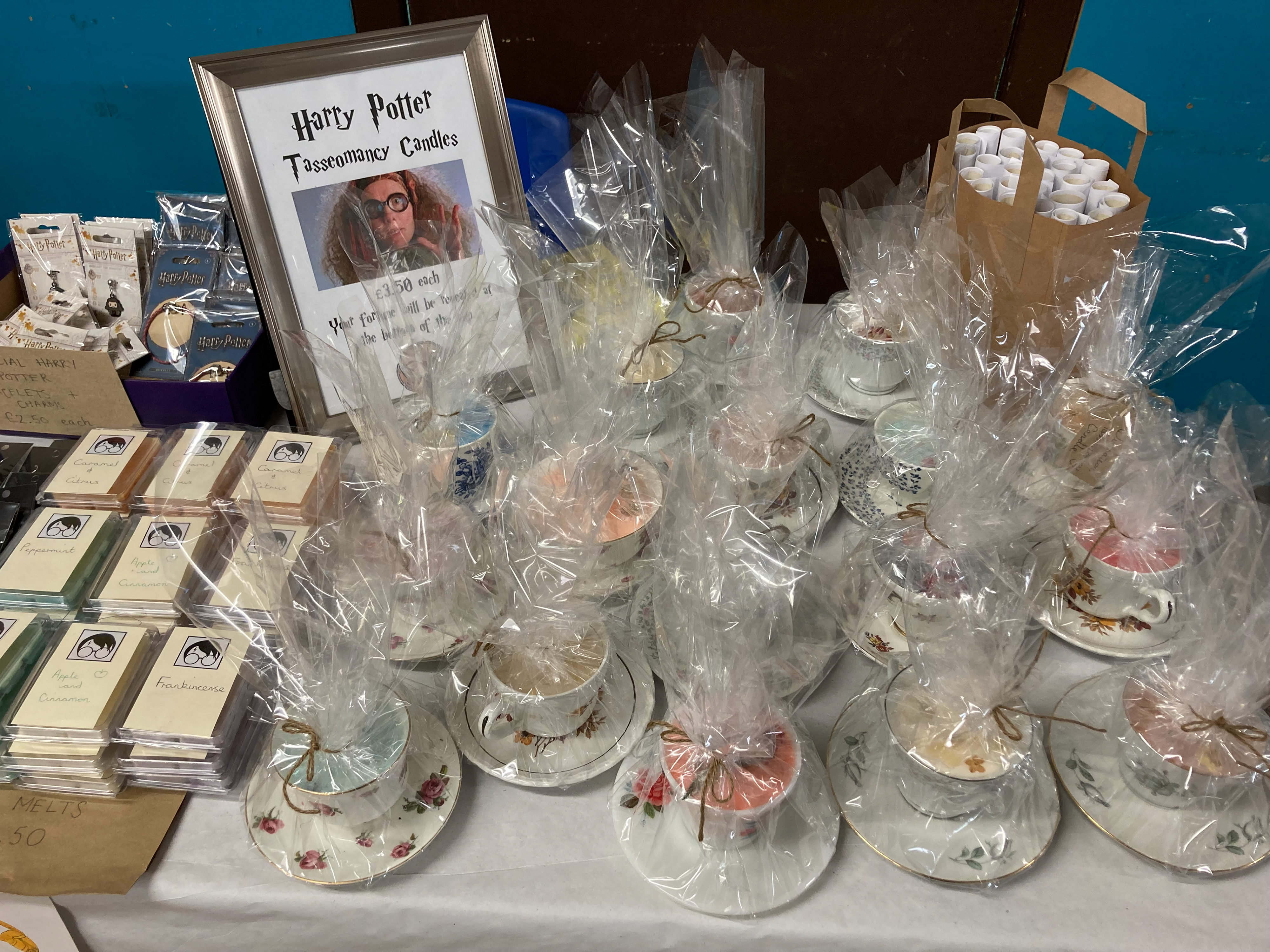 We made 'Divination Candles' in teacups and scented wax melts to go with our jewellery. We went to local Christmas fairs to sell our goods.