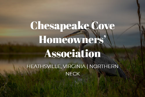 - PAY BY U.S. MAIL: Payable to Chesapeake Cove Homeowners' Association, P.O.BOX 285, Burgess, VA 22432