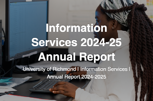 Information Services works on several fronts to support the considered use of Generative Artificial Intelligence (GenAI) at the University of Richmond. In January 2024, Vice President for Information Services and CIO Dr. Keith W. McIntosh convened an AI Working Group to focus on the academic aspects of GenAI. The group, which includes faculty and members of the Provost’s Office, the Faculty Hub, the Weinstein Learning Center, Boatwright Library, and Information Services, produced: