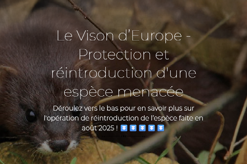 Afin de soutenir les populations sauvages de Vison d’Europe, une opération de réintroduction de l’espèce a été conduite à l’été 2025 sur la Vallée de la Charente et ses affluents (entre Saintes et Angoulême). Un gros travail de neutralisation des menaces et de communication a été conduit en amont. Il s’agit d’une première en France, mais les équipes du PNA ont pu bénéficier des retours d’expérience estoniens et espagnols.