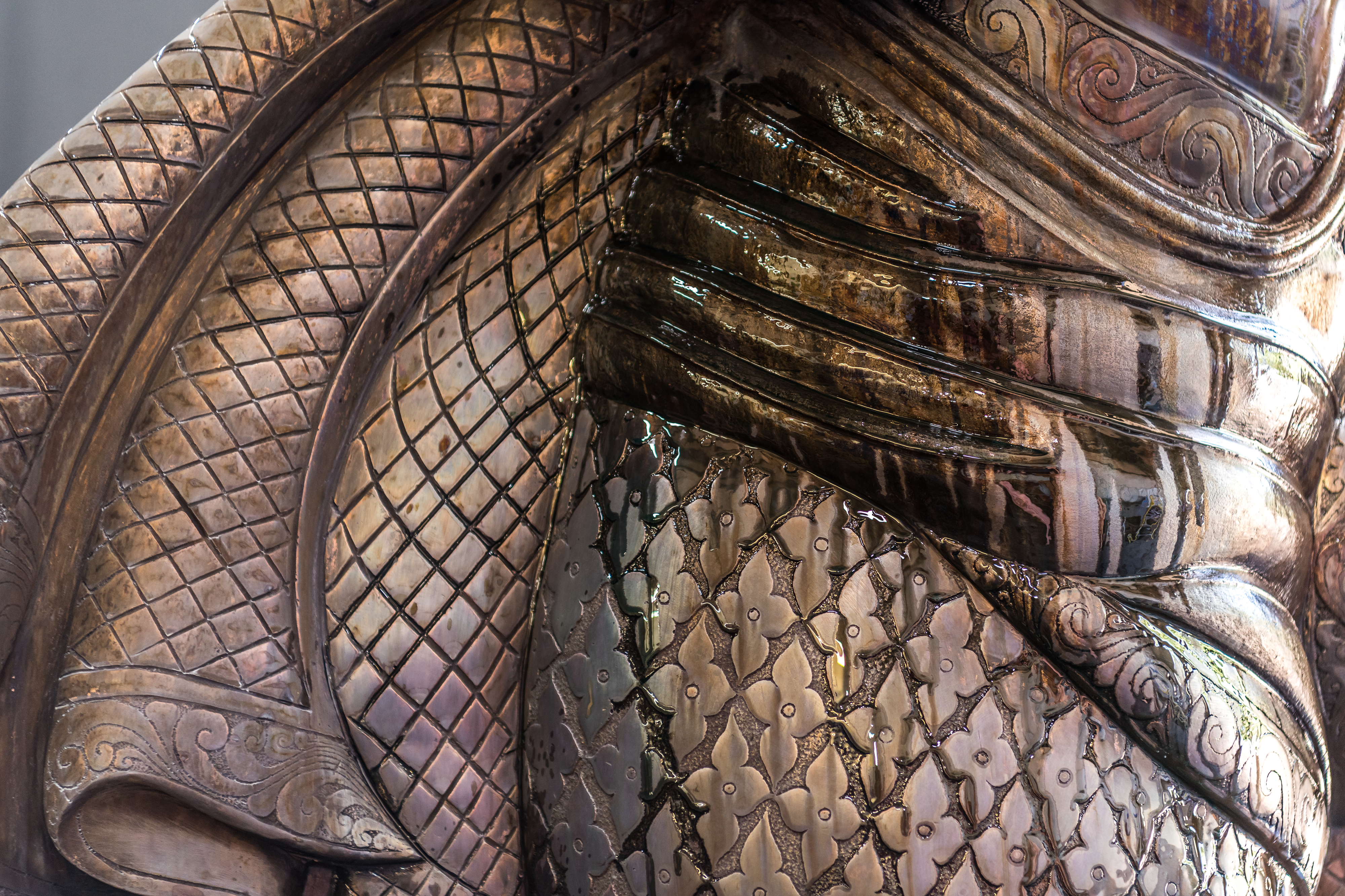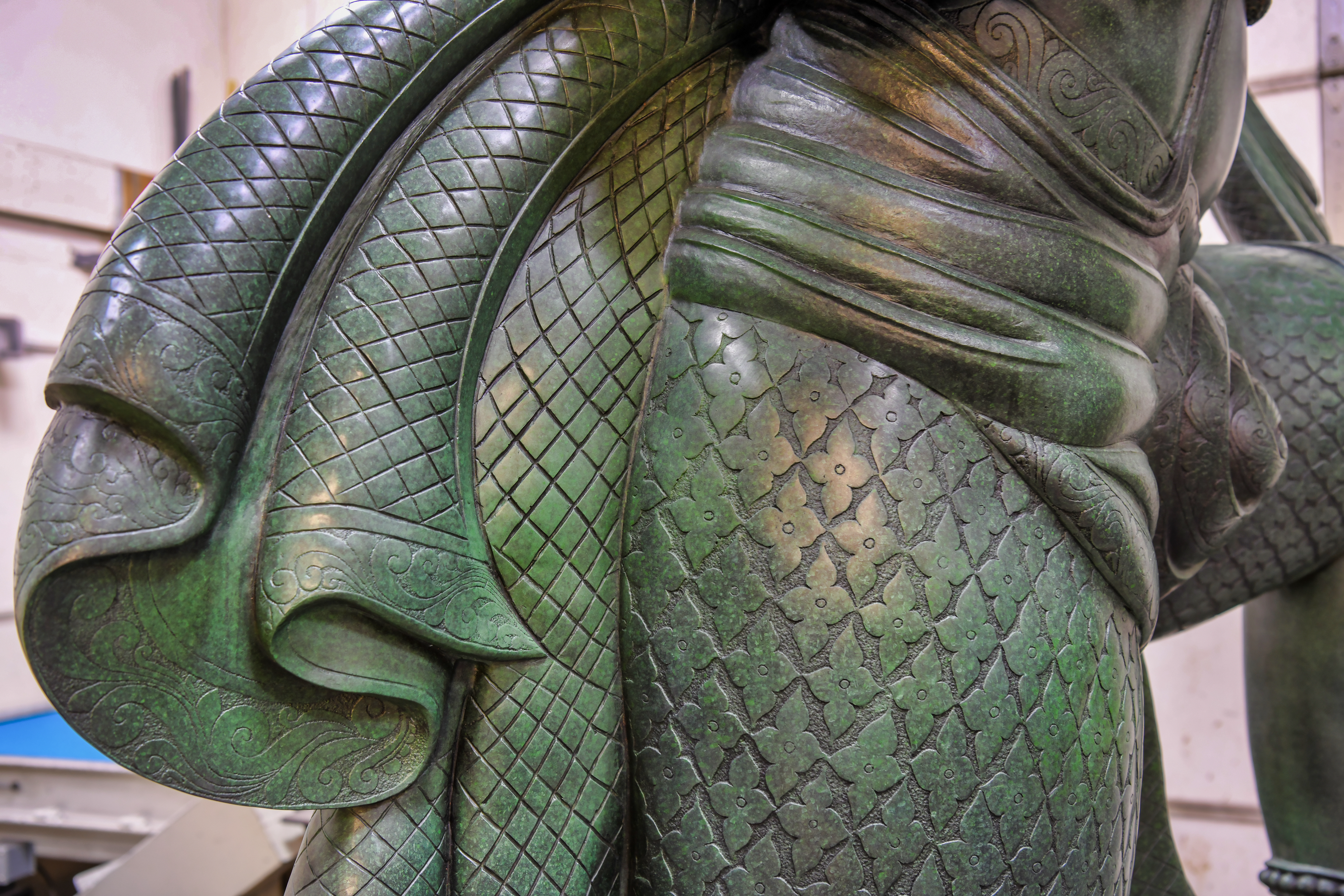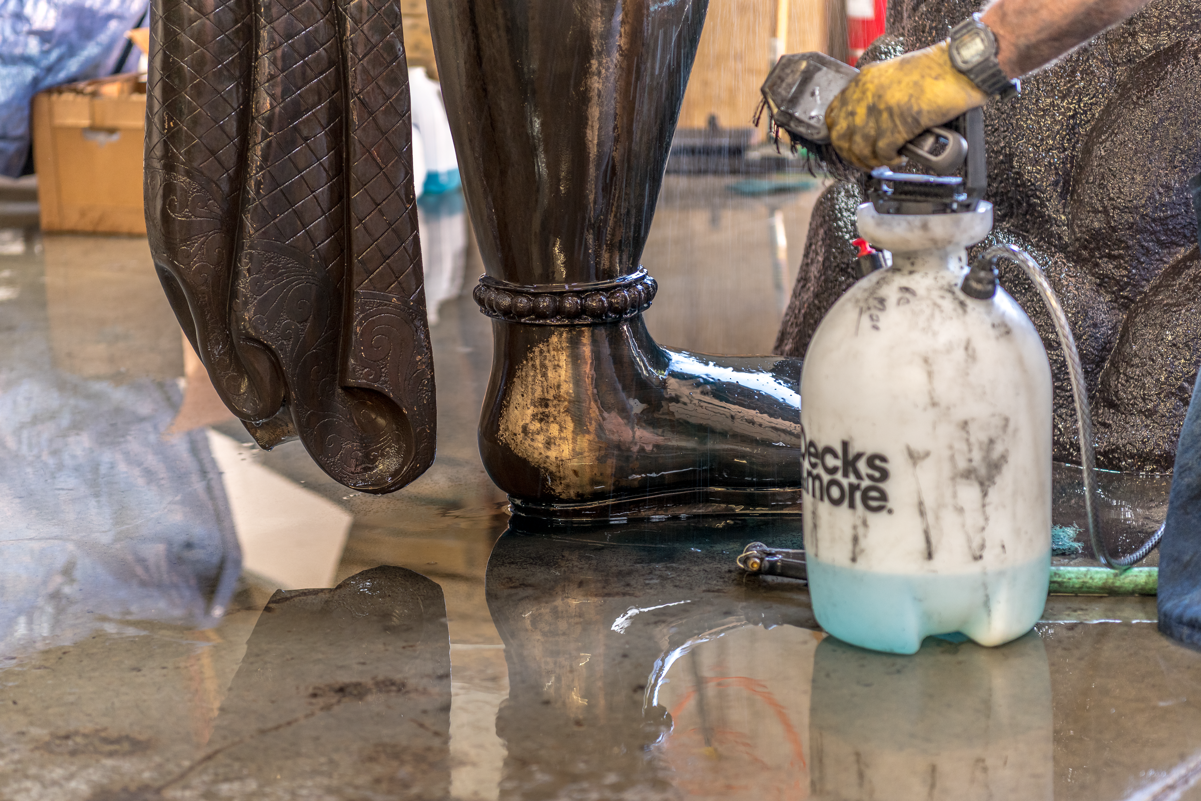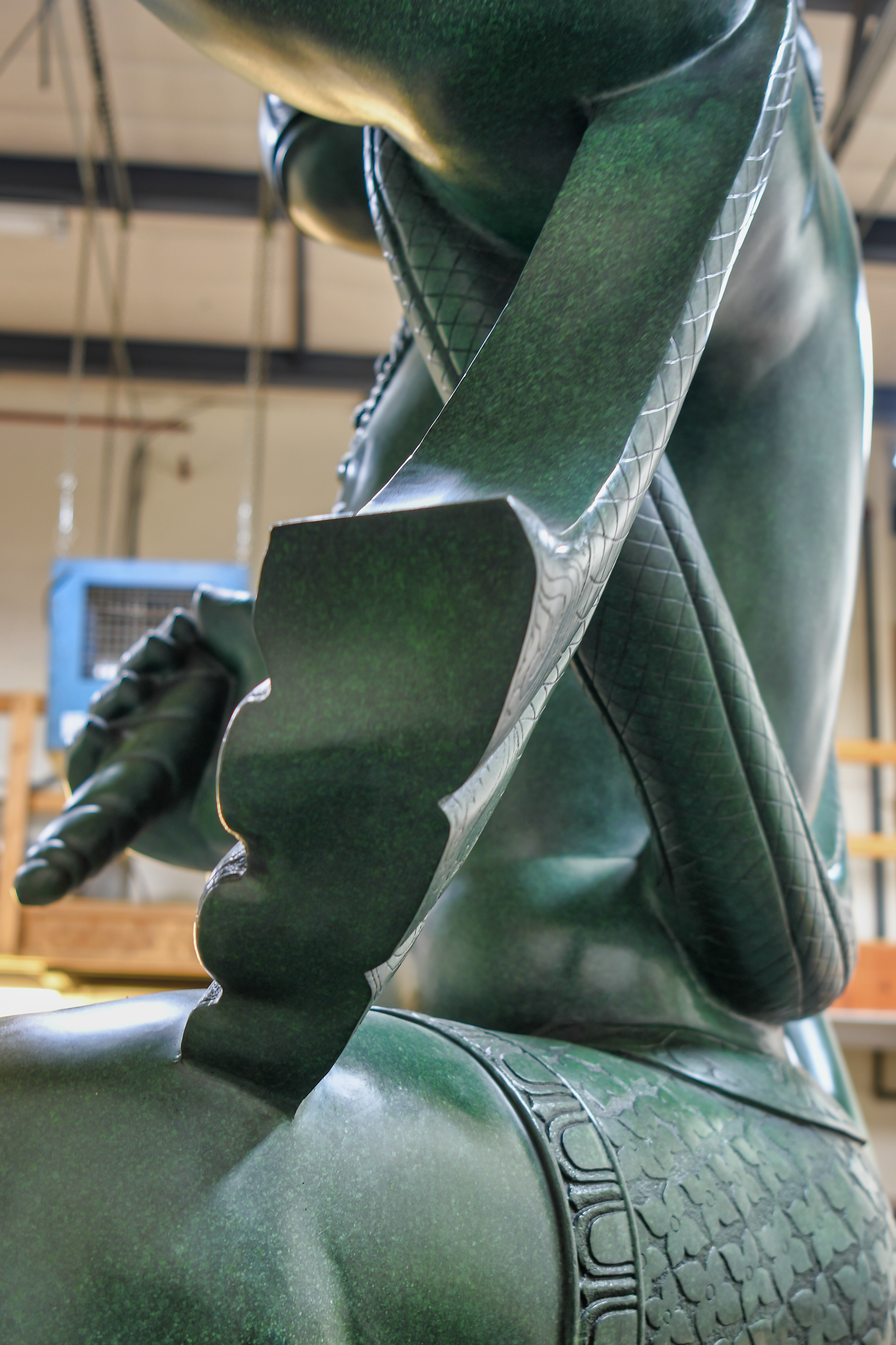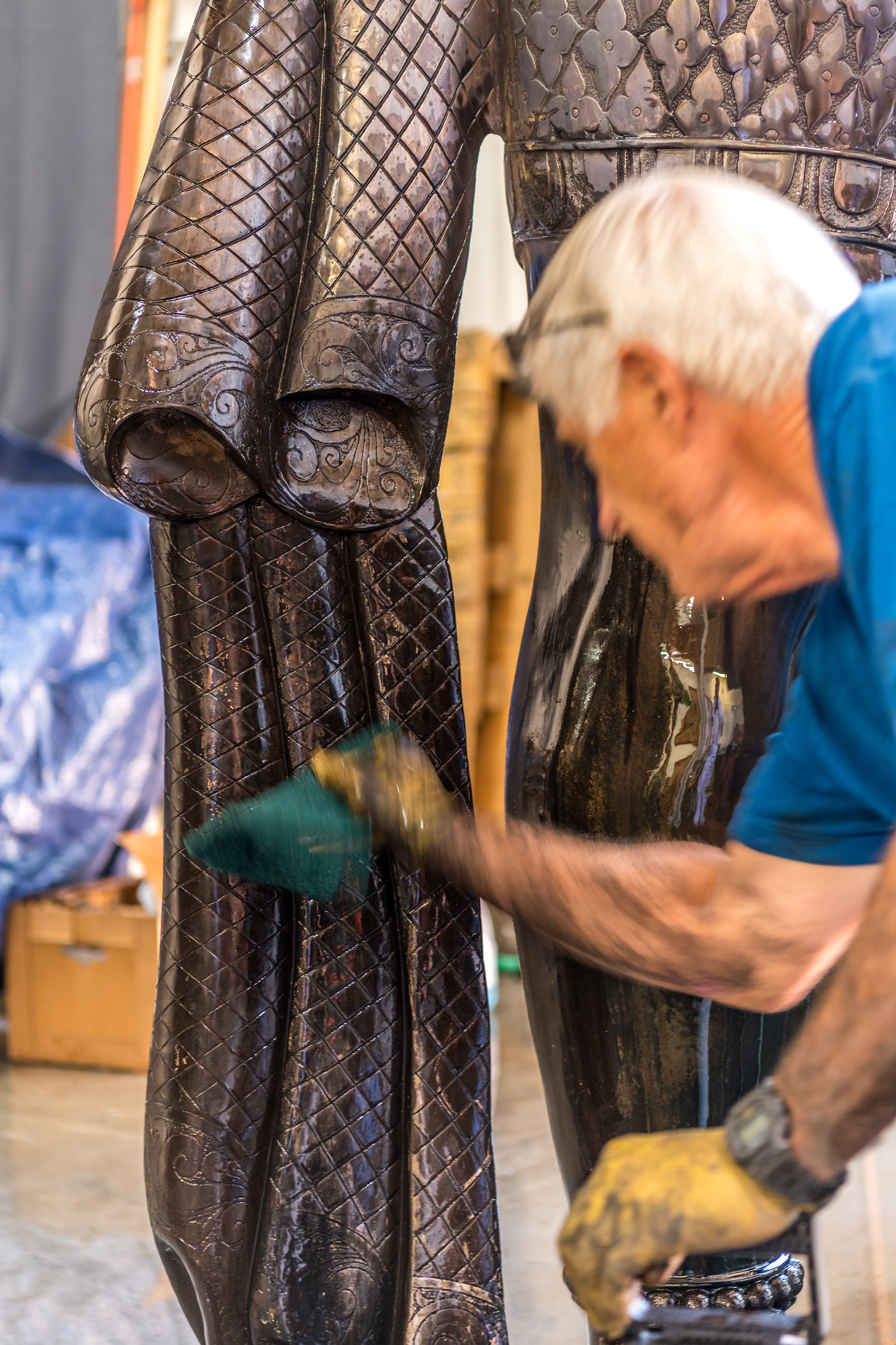 Patrick’s meticulous work enables copper within the bronze to accept the reactions of chemical compounds from his patina process.
