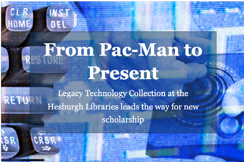 The technological blasts from the past were available for DeJaegher’s class thanks to the Hesburgh Libraries’ Legacy Technology Collection. Curated by Dan Johnson, English, Digital Humanities, and Film, Television, and Theatre Librarian and Interim Co-Director of the Navari Family Center for Digital Scholarship, the collection comprises vintage consoles and software.