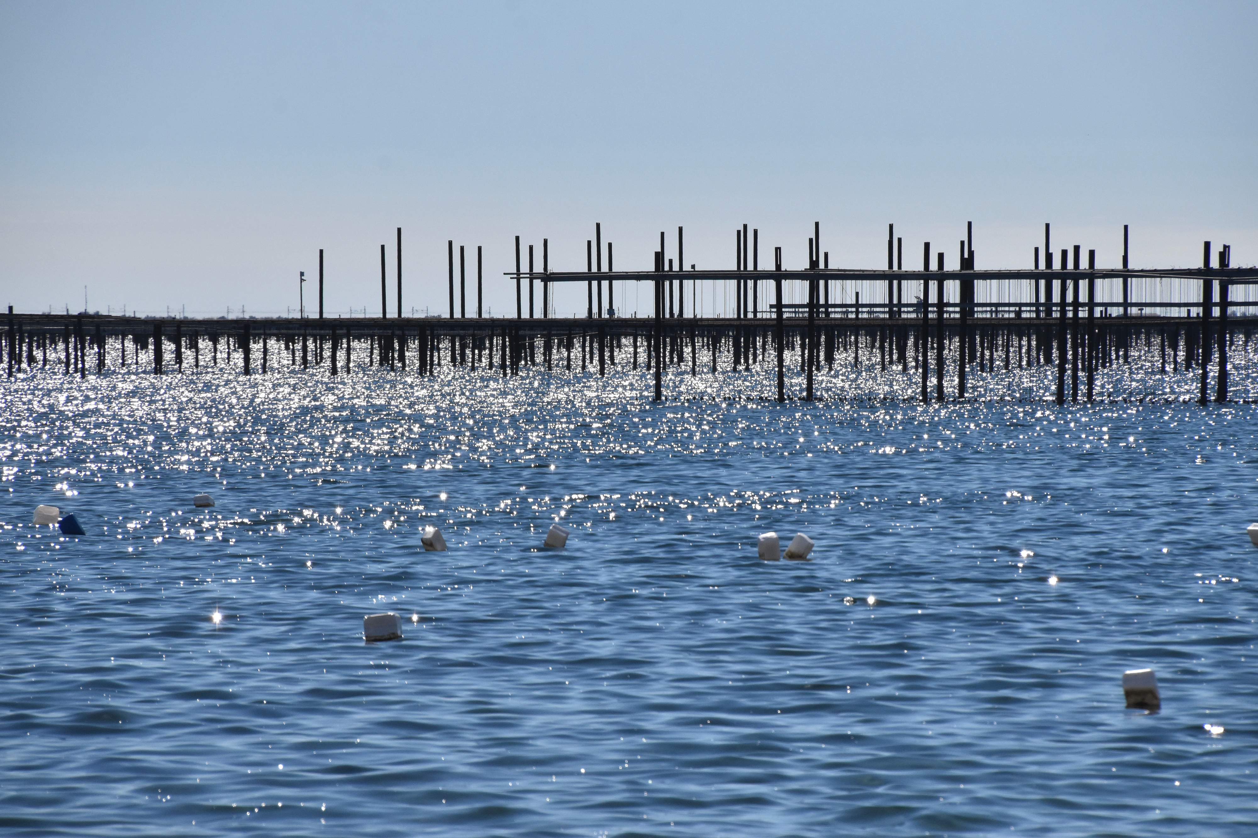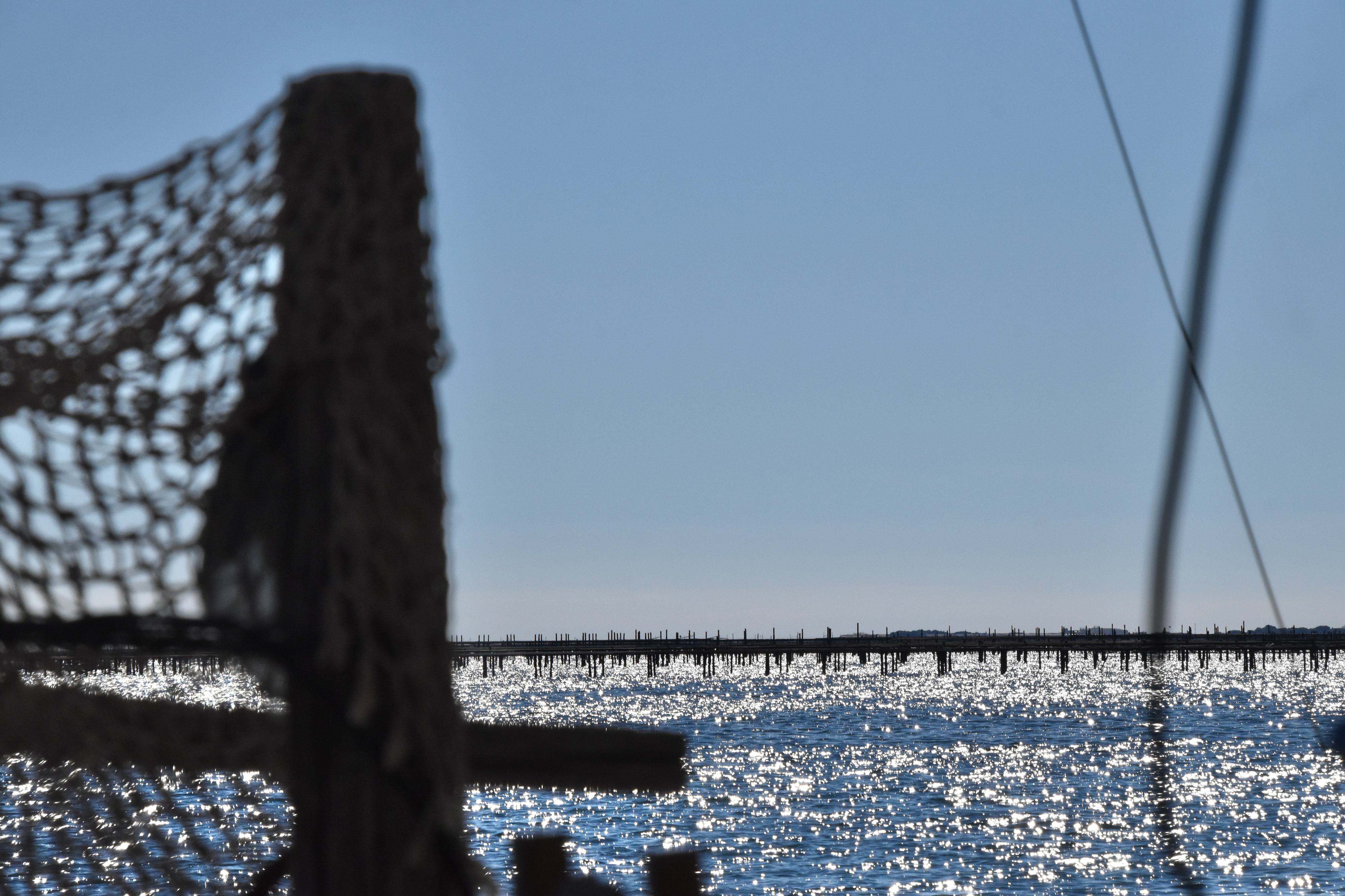 L’étang de Thau est une lagune, juste séparée de la Méditerranéenne par un long banc de sable. il est relié à cette mer, au Sud-Est par le canal de Pisse-Saumes et au Sud-Ouest par celui de Sète. Il est en outre l’embouchure du canal du Midi ainsi que du canal du Rhône à Sète. D’une superficie de 7500 hectares et d’une profondeur moyenne de 4,5 m. Il est alimenté en eau douce par de nombreux cours d’eau et en eau salée par les canaux le reliant à la grande bleue. Mais hélas hélas, baignade interdite afin de préserver les élevages d’huîtres et de moules.