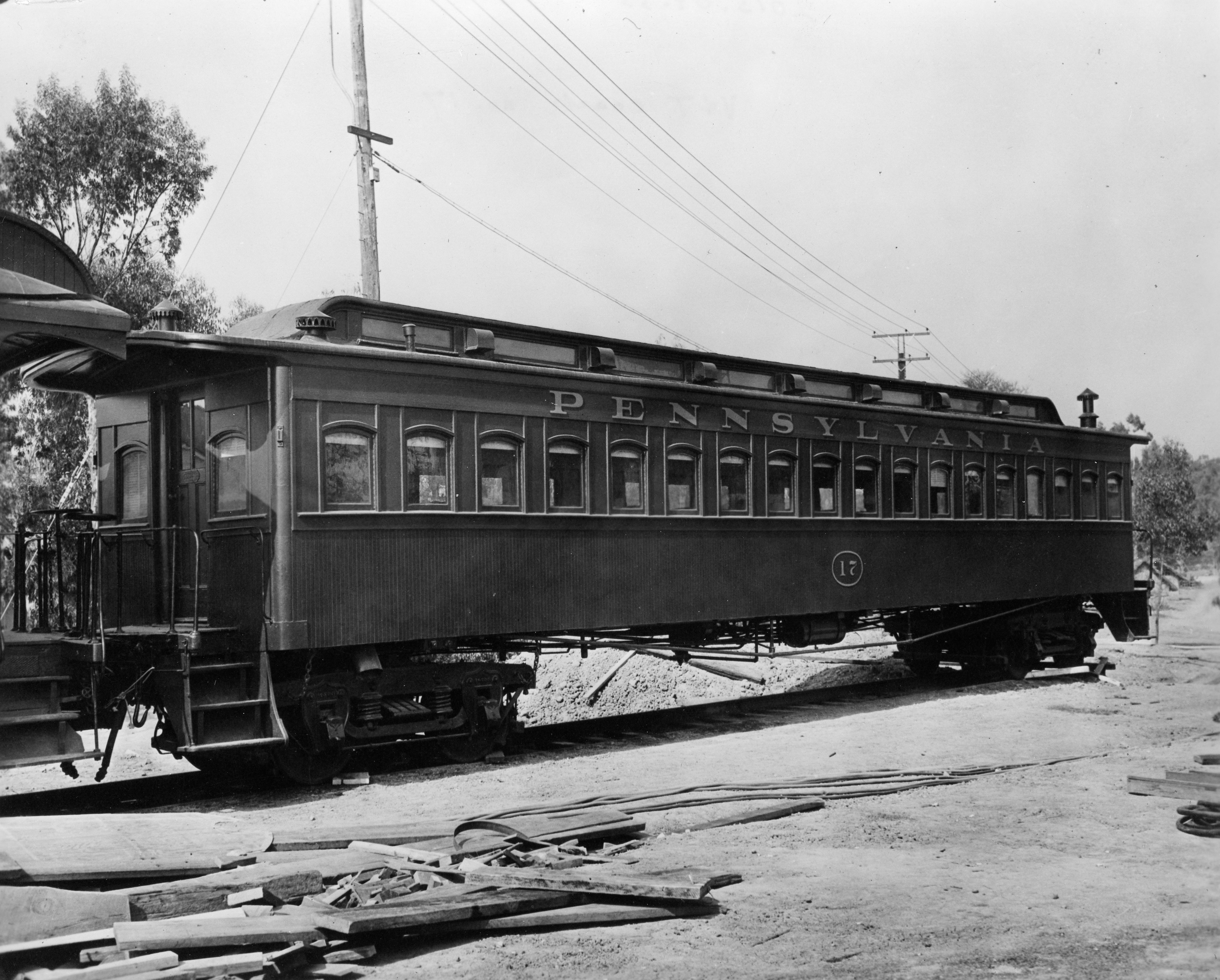 Antecedente: El vagón se volvió a pintar y se le puso la inscripción Pennsylvania Railroad Número 17 para el Verano del Centenario en 1946. Cortesía del Museo del Ferrocarril del Estado de Nevada.