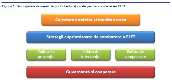 Combaterea ELET poate fi eficientă doar printr-o strategie coordonată la toate nivelurile de autoritate și domenii de politici. Importanța dezvoltării unei strategii cuprinzătoare a fost recunoscută în luna iunie 2011 de către Consiliul Educație în Recomandarea acestuia cu privire la politicile pentru reducere părăsirii timpurii a școlii. Consiliul a accentuat nevoia de politici specifice și eficiente, bazate pe evidențe, în funcție de circumstanțele naționale.
