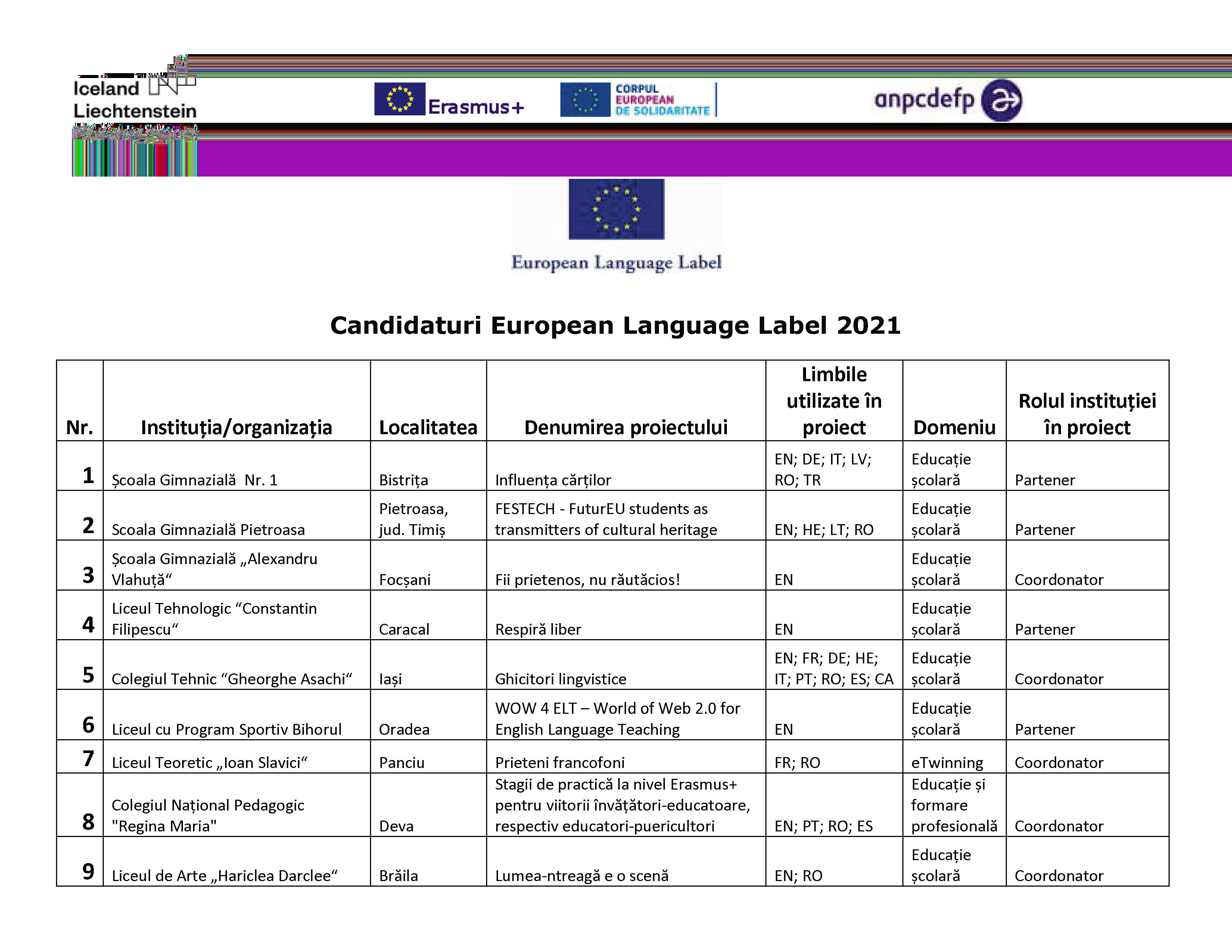 Certificatul Lingvistic European 2021 – acordat proiectelor inovatoare în predarea și învățarea limbilor străine
