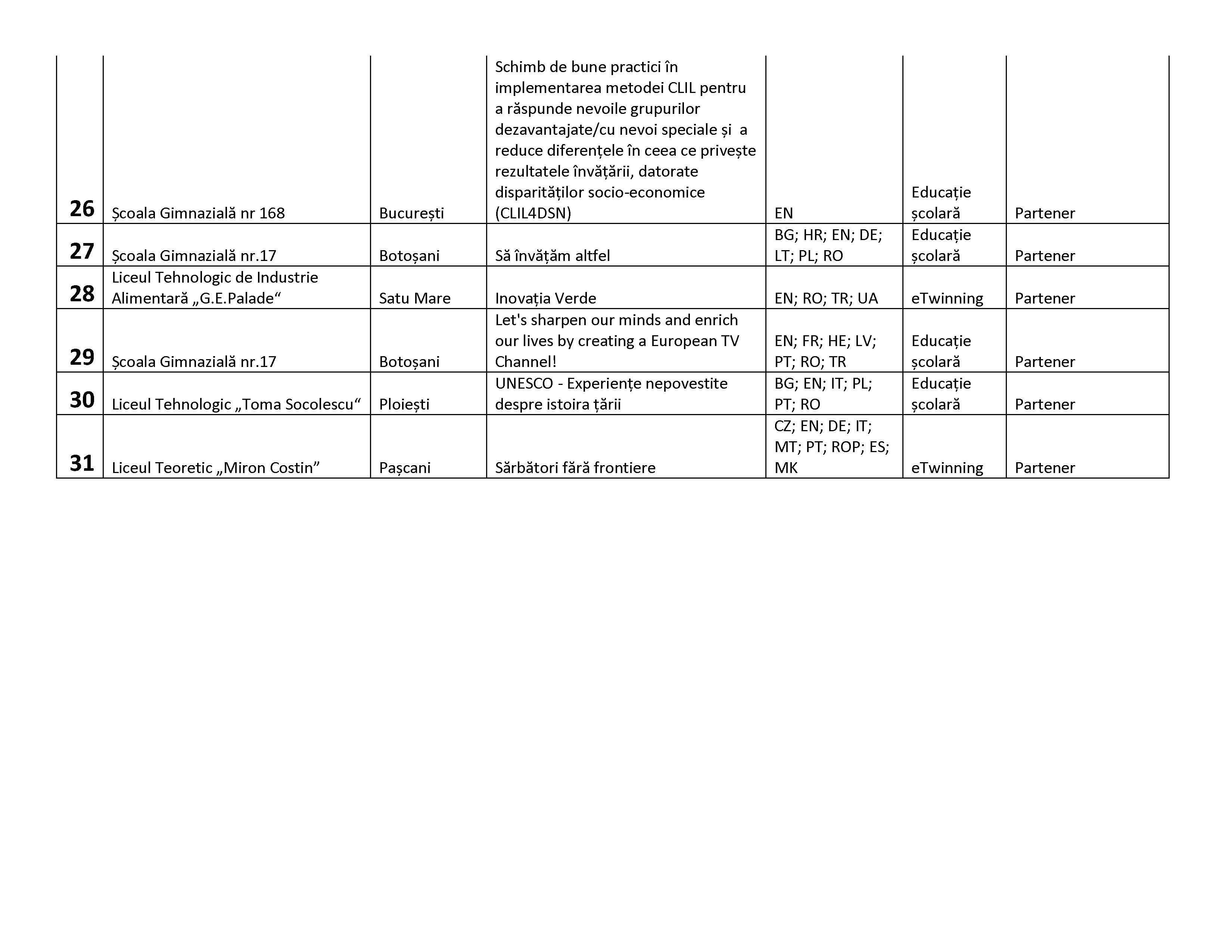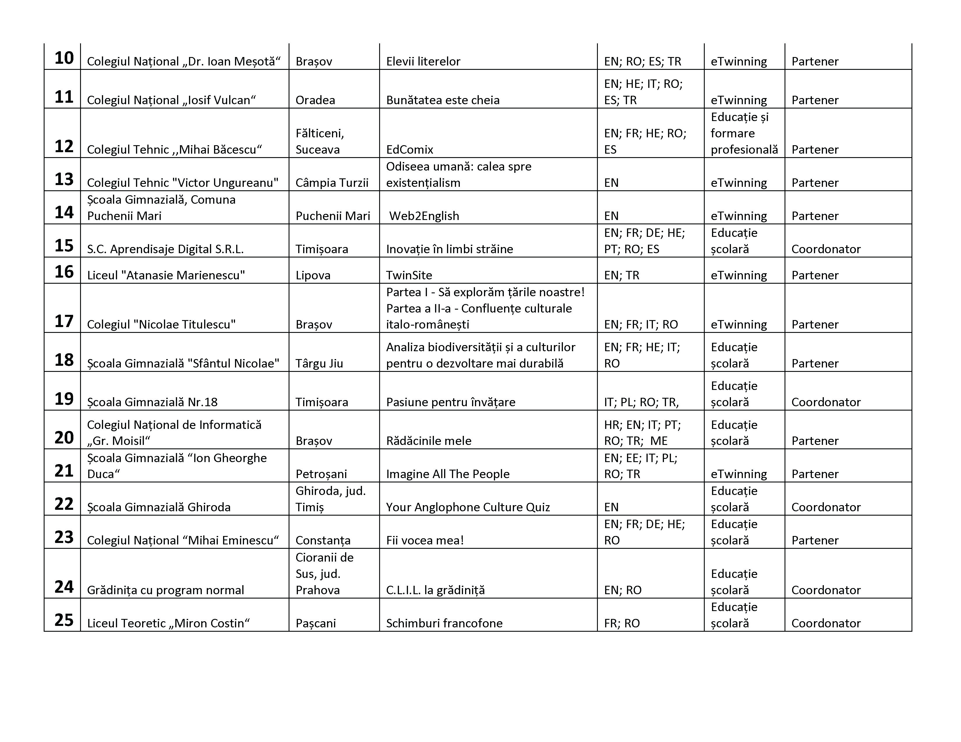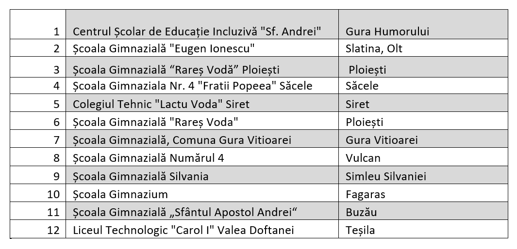 În ce-a de-a treia rundă de implementare a proiectului, vor primi finanțare următoarele școli din România: