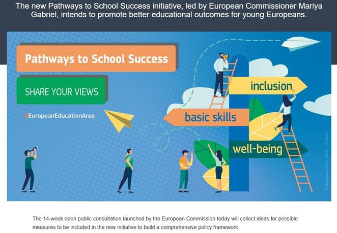 Vă invităm să contribuiți la conturarea inițiativei „Calea către reușita școlară” prin împărtășirea ideilor și practicilor dumneavoastră. Consultarea publică este disponibilă până pe 30/09/2021, în 23 de limbi. Completarea chestionarului durează 20 minute. #NextGenerationEU #education #nooneleftbehind