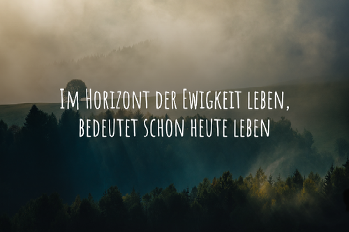 Im Horizont der Ewigkeit leben bedeutet aus meiner Sicht : Die Welt ist immer Gottes Welt – auch wenn sie ein sehr verzerrtes Bild des Göttlichen widerspiegelt. Alle Menschen sind Geschöpfe Gottes, auch wenn sie und wir verkehrte Wege gegangen sind oder gehen. Gott will uns Menschen zu sich zurückholen und uns das wirkliche Leben schenken.