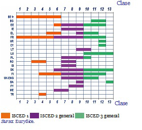 Numărul de ani în care se predă disciplina distinctă obligatorie variază de la 1 la 12 ani. Treisprezece sisteme de învățământ prevăd această disciplină distinctă obligatorie doar la nivel secundar. În schimb, în Franța, Estonia și Finlanda (cu o oarecare flexibilitate din acest punct de vedere la nivel secundar superior) acestă ofertă este prezentă în mod continuu în învățământul general, începând cu nivelul primar. De asemenea, Grecia și România au o ofertă obligatorie sub formă de disciplină distinctă, distribuită între nivelurile primar și secundar, dar fără a fi continuă.