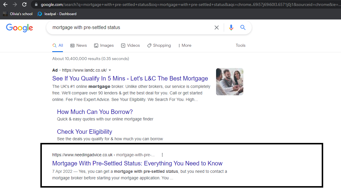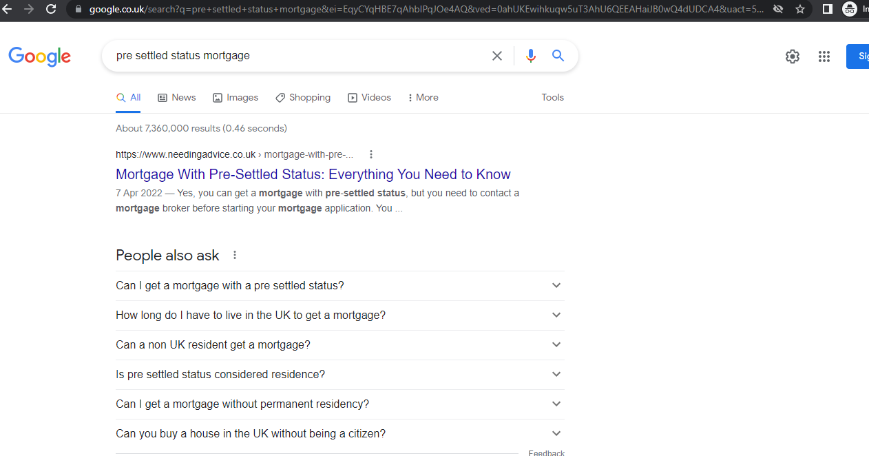Keyword- mortage for pre settled status