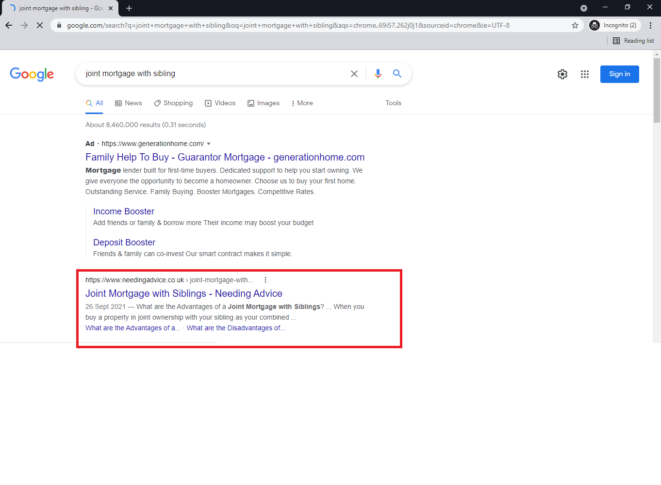 Keyword - Joint Mortgage with siblings