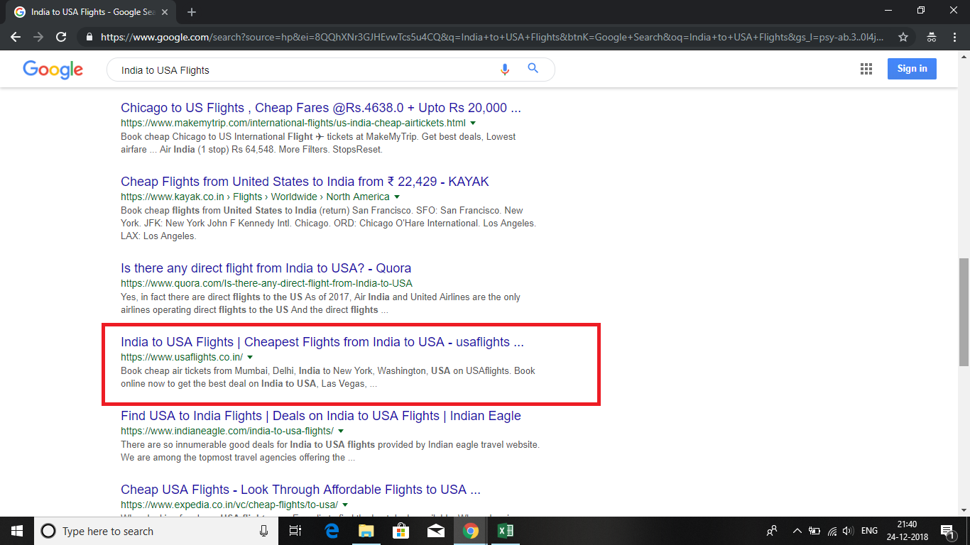 Ranked USAflights.co.in to first page of google with keyword "India to USA Flights"