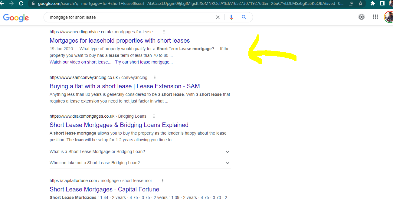 Keyword - Mortgage for short lease