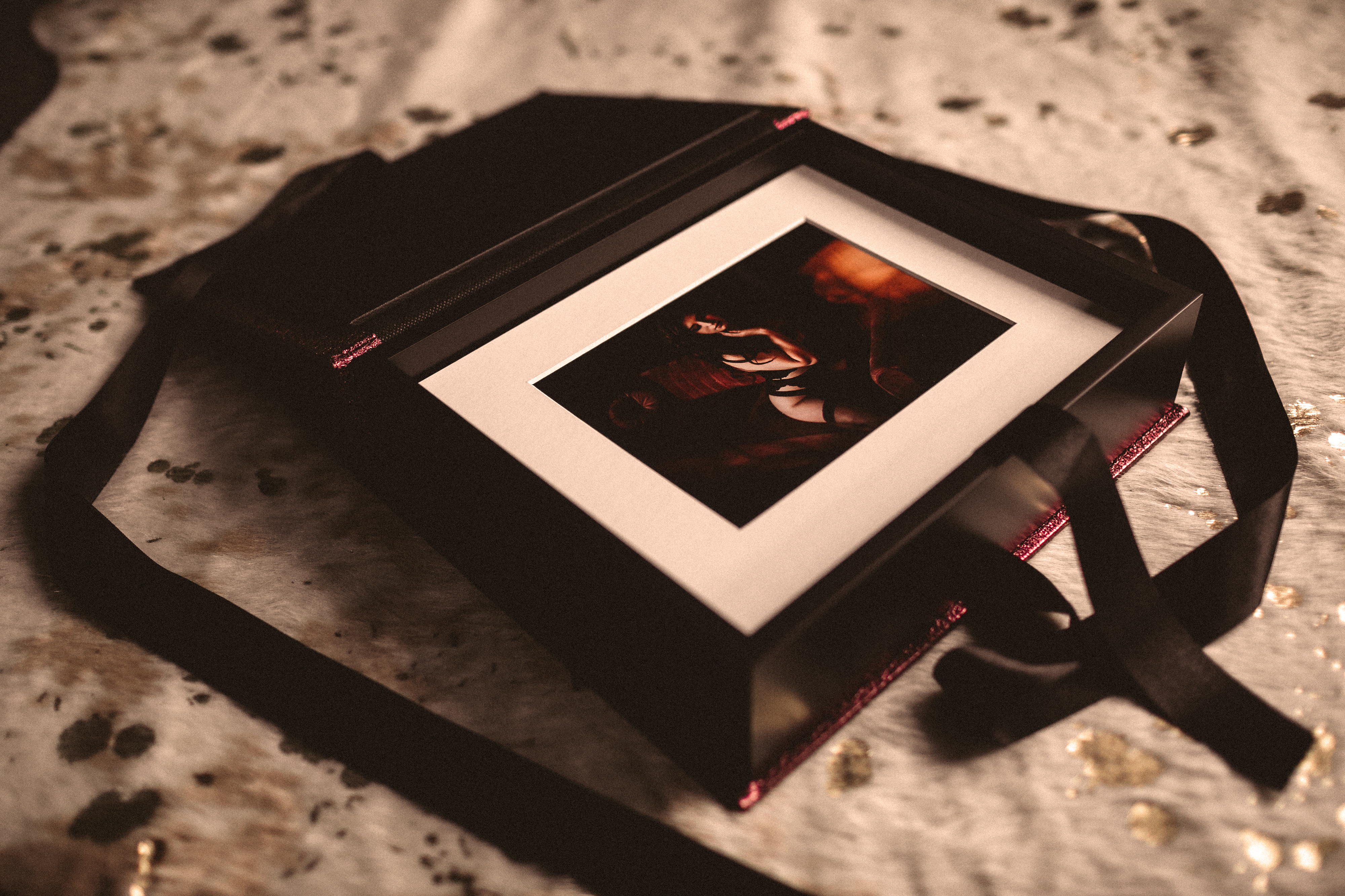 A luxurious photo box containing a matted print collection including 15 of your favorite images with box cover of your choice. Over 100 cover materials available.
