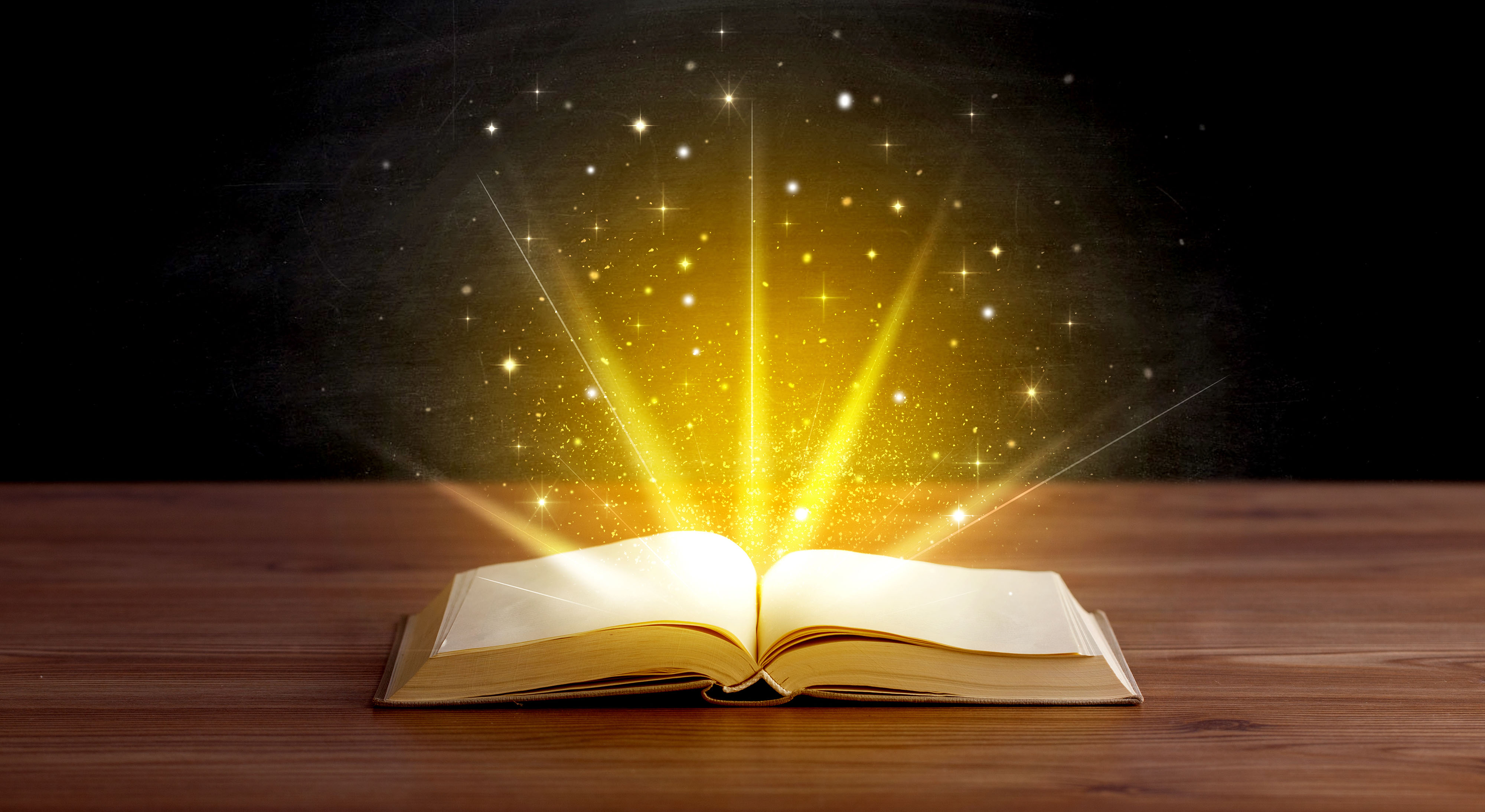 Created with images by ra2 studio - "Yellow lights and sparkles coming from an open book " • Fabio Principe - "Young boy on retro mini van transport read a book Life inspiration concept with family minivan adventure trip reading a blast relax moment Student doing homework outdoor camping holiday near the sea"