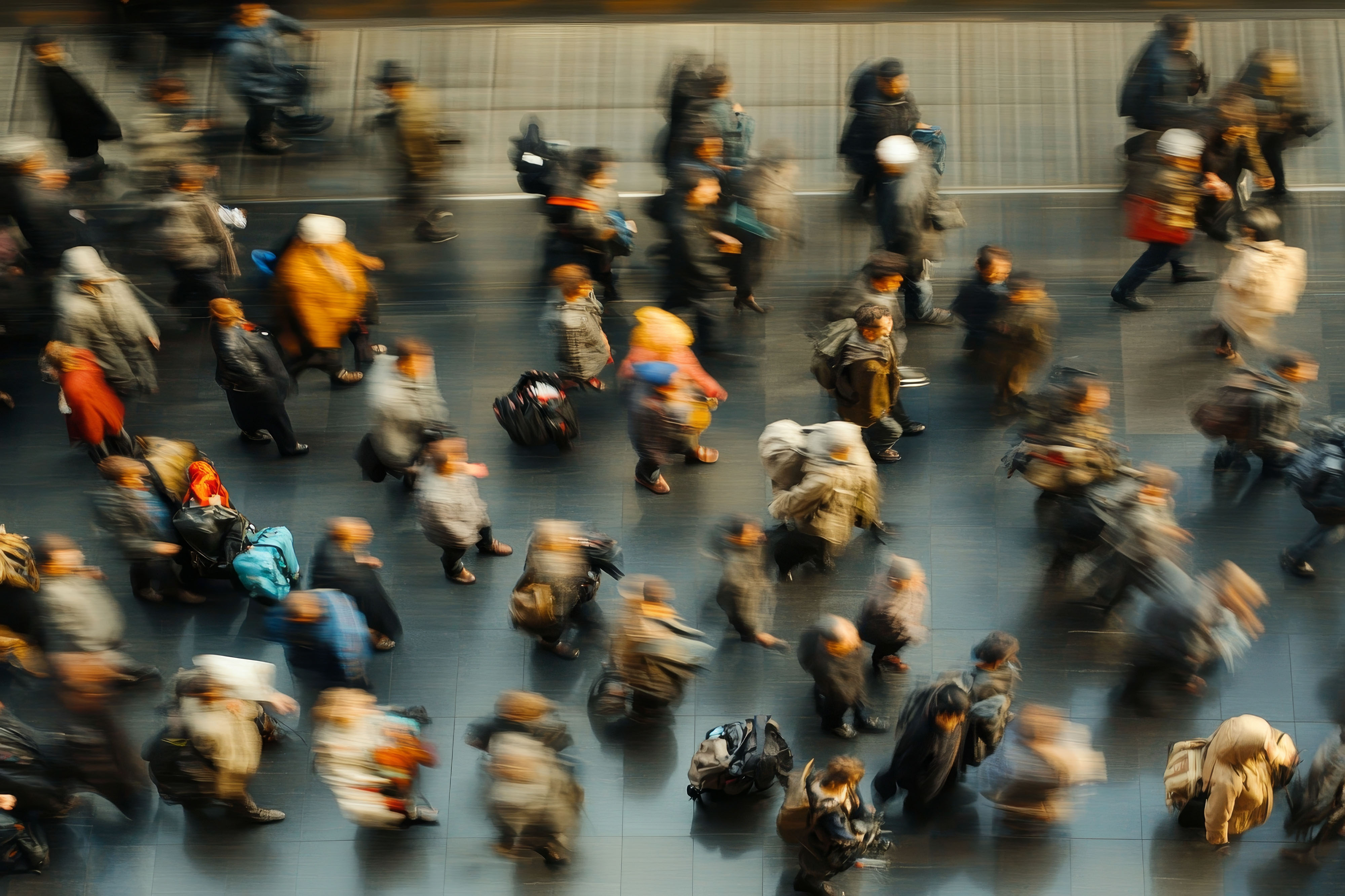 Creado con imágenes de Mikki Orso - "Overview of displaced individuals in transit capturing the struggles of forced migration" • practice - "A helpless person suffering from depression, symbolizing the loss of joy in life, a common modern psychological problem" • deagreez - "Psychedelic Generative AI Collage In Black And White With Surreal schizophrenic Concepts" • MiaStendal - "Wet asphalt, reflection of neon lights, a searchlight, smoke. Abstract light in a dark empty street with smoke, smog. Dark background scene of empty street, night view, night city."